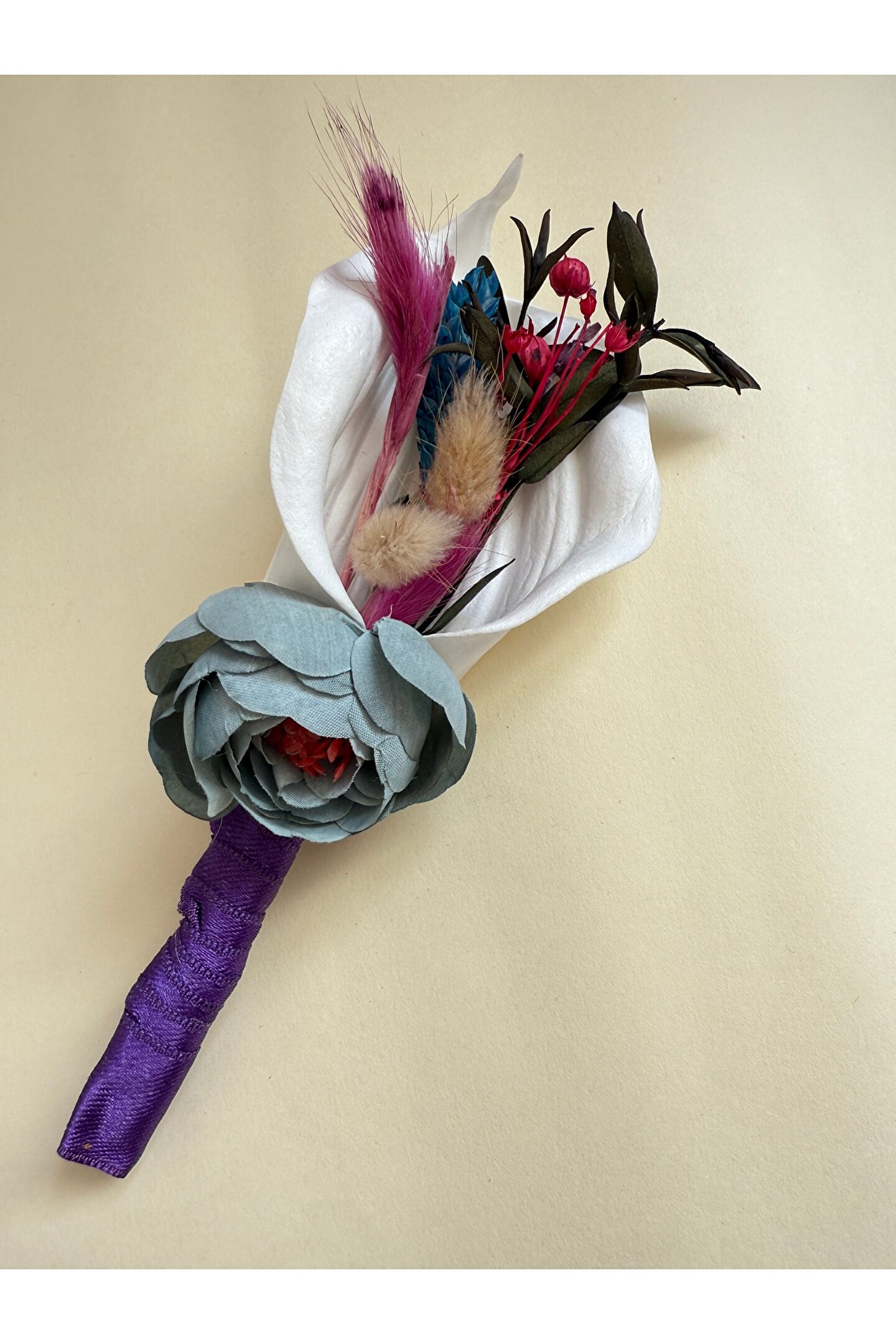 İthal kuru çiçekler ve yapay çiçekler ile hazırlanan özel tasarım damat yaka çiçeği