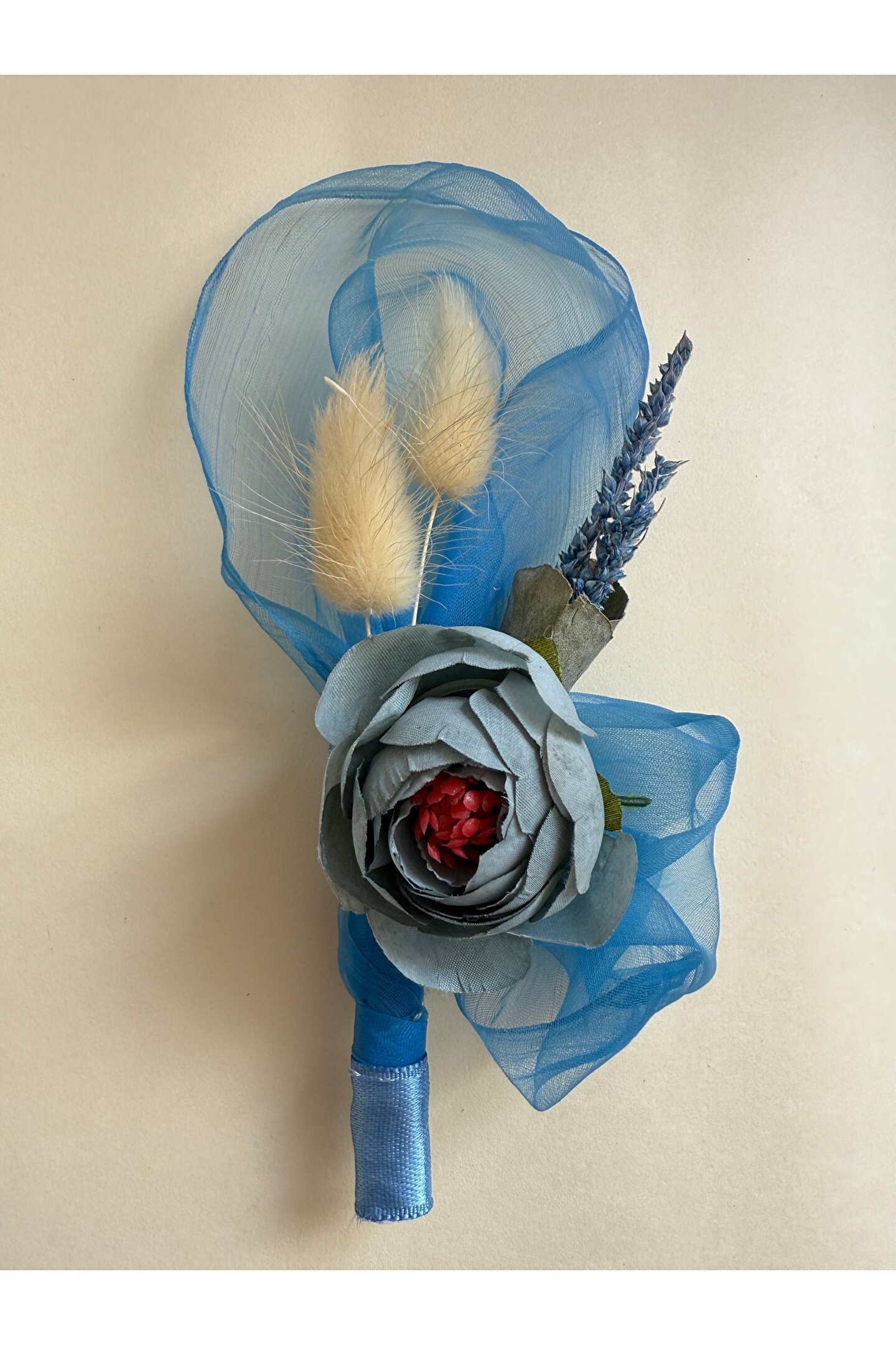 ithal kuru çiçekler ve yapay çiçekler ile hazırlanan özel tasarım damat yaka çiçeği