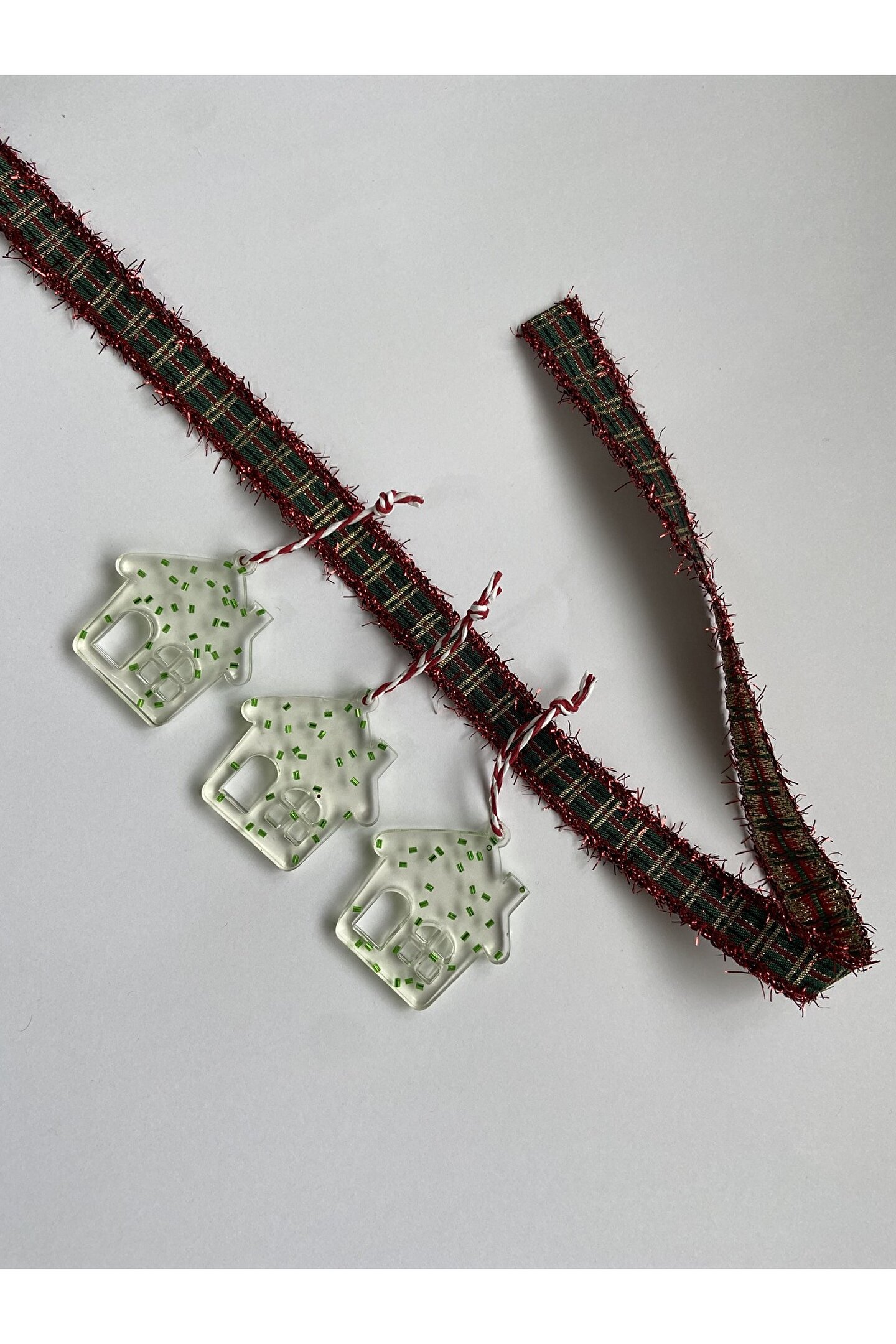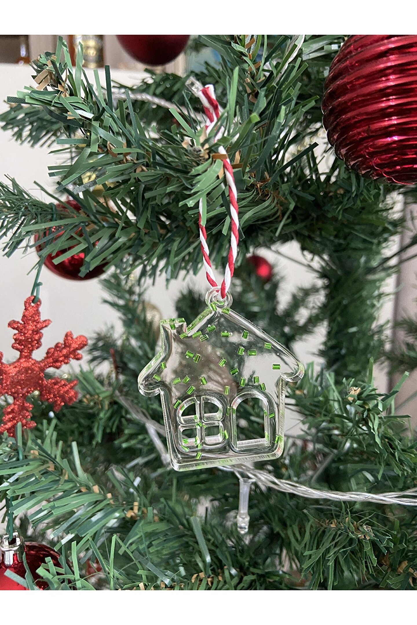 Ev formunda hazırlanan özel tasarım el emeği epoksi yılbaşı ağacı süsü.