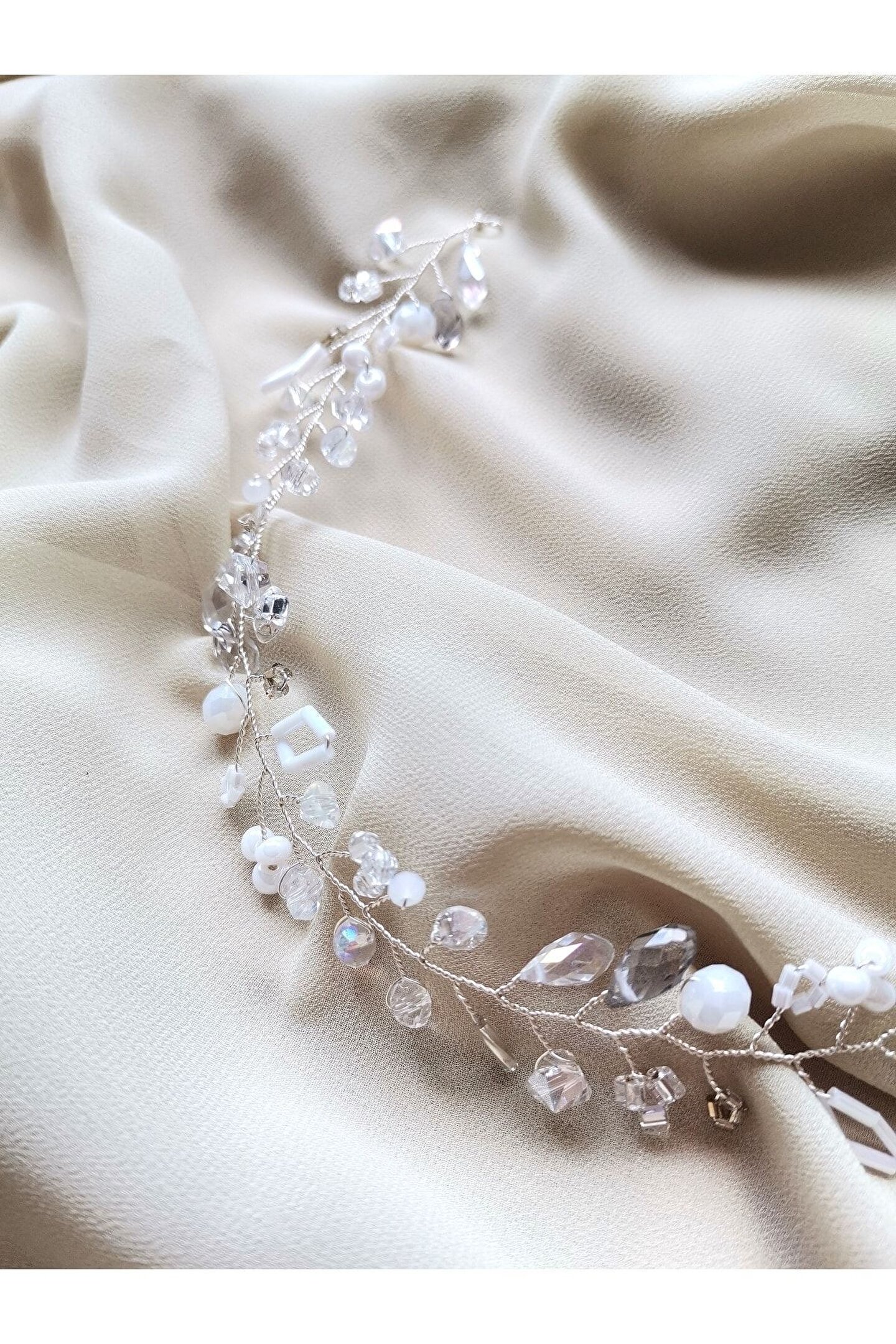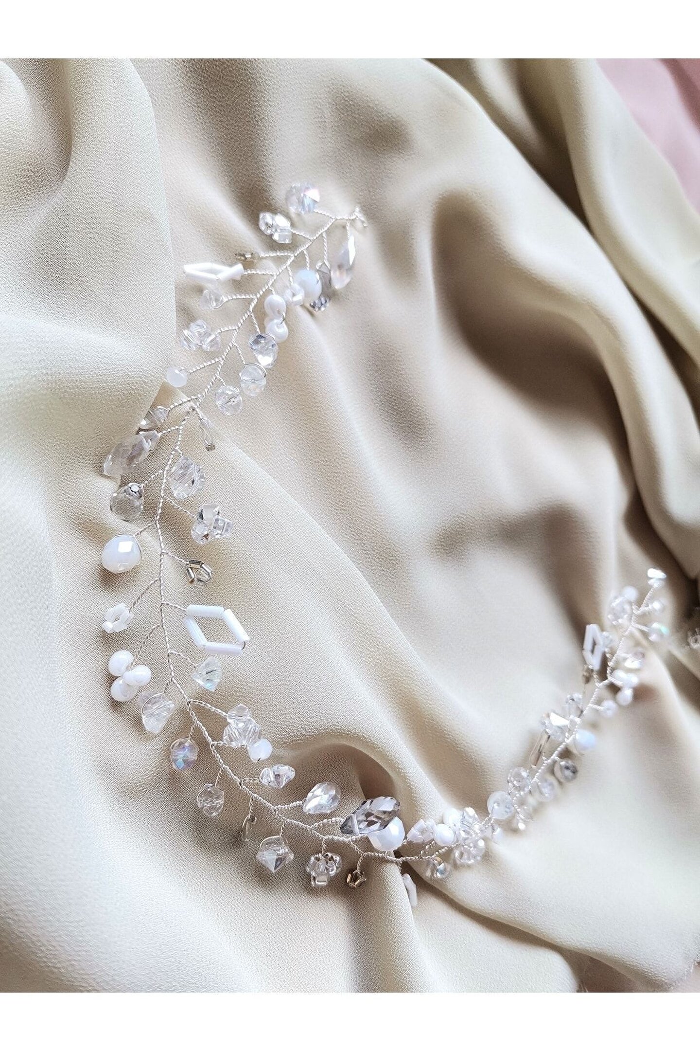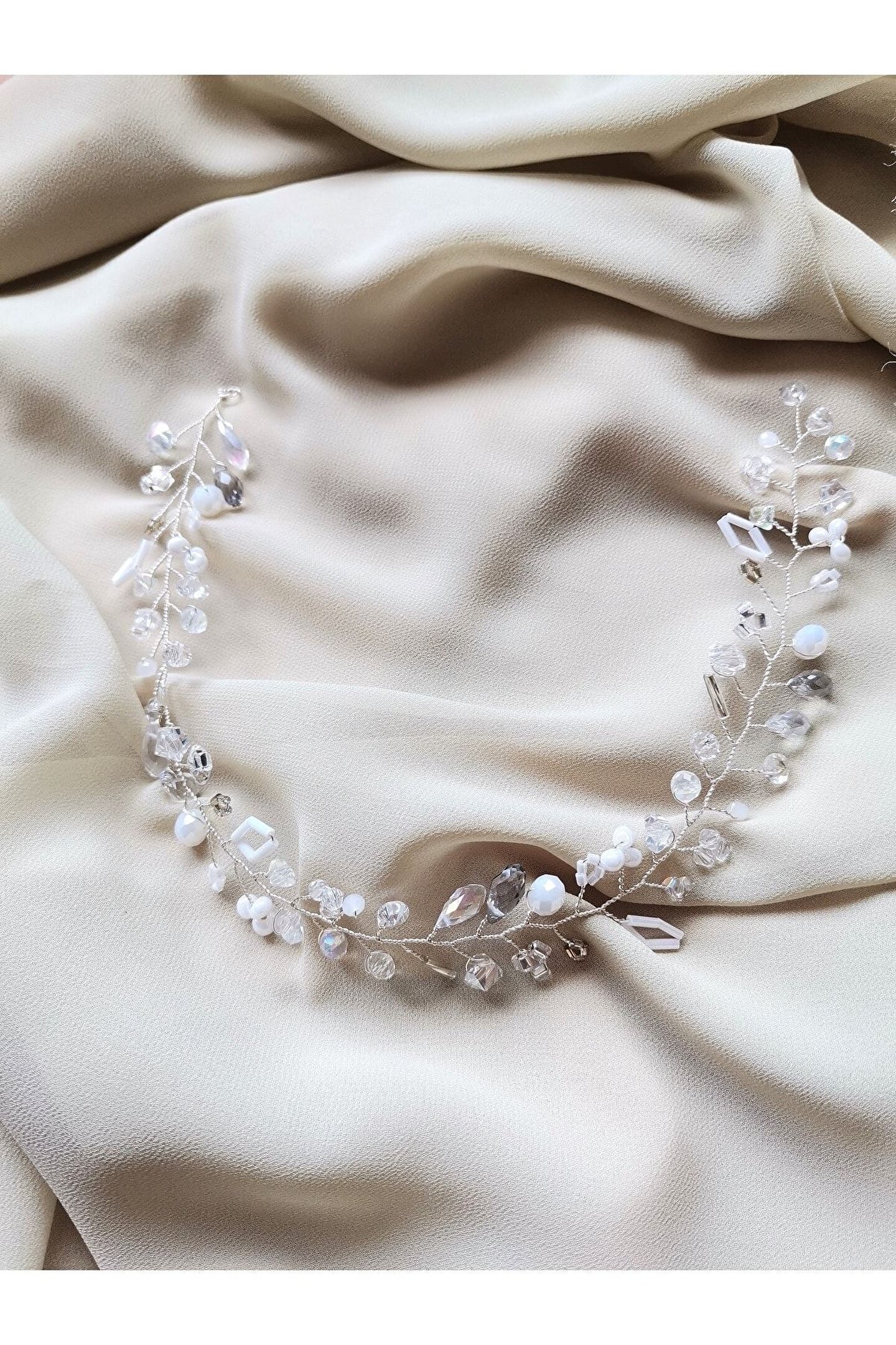 Zarif beyaz rengiyle, her gelinliğin en önemli tamamlayıcısı olan Helen gelin tacı, beyazın asaletini ve saflığını yansıtır; Göz alıcı taşlı modeli ile dikkat çeken bu aksesuar, gelinlerin ışıltısını ön plana çıkarır ve düğün gününde göz kamaştırıcı bir etki yaratır;