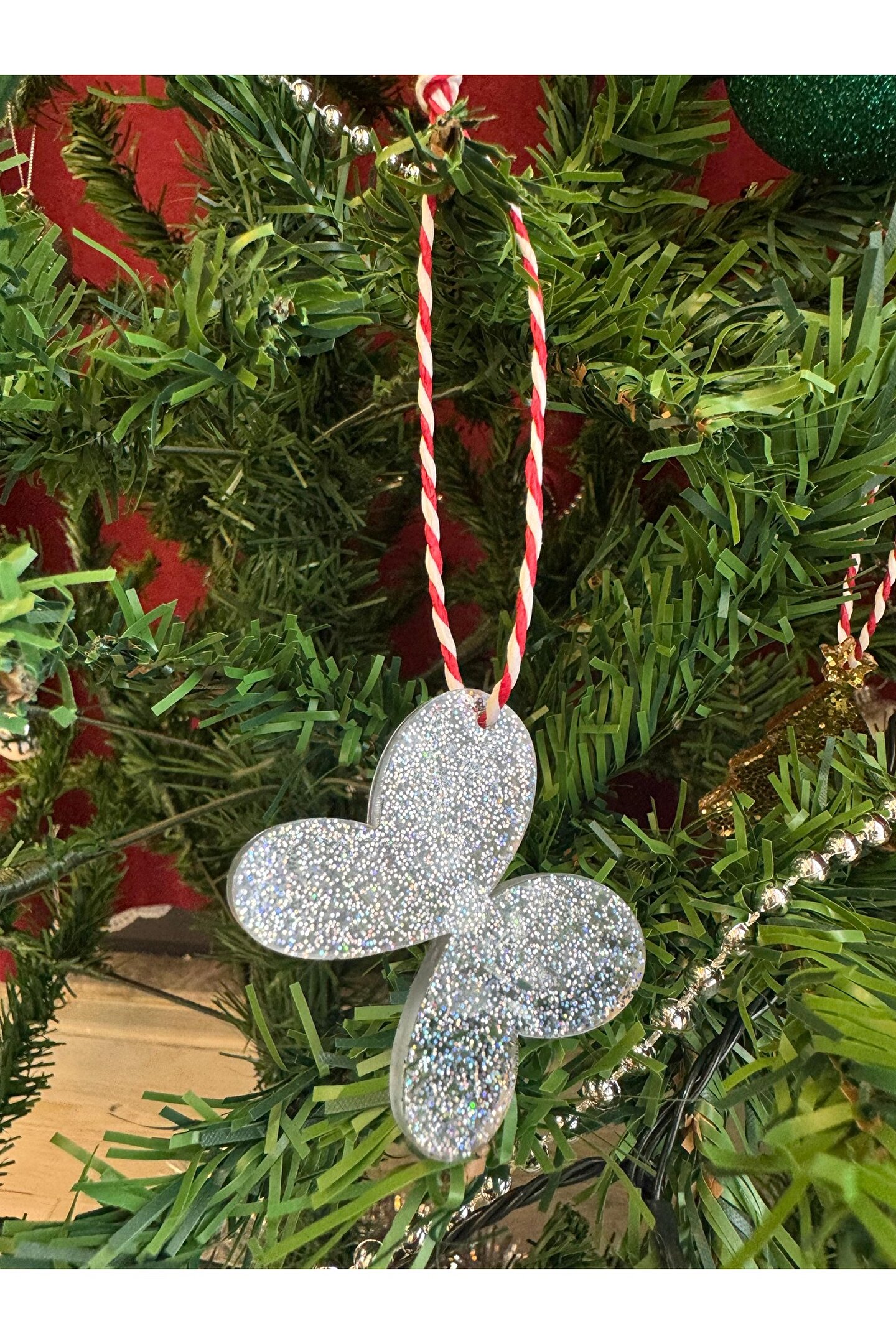 Kelebek formunda hazırlanan özel tasarım el emeği epoksi yılbaşı ağacı süsü.; paket içeriği 3 adettir.