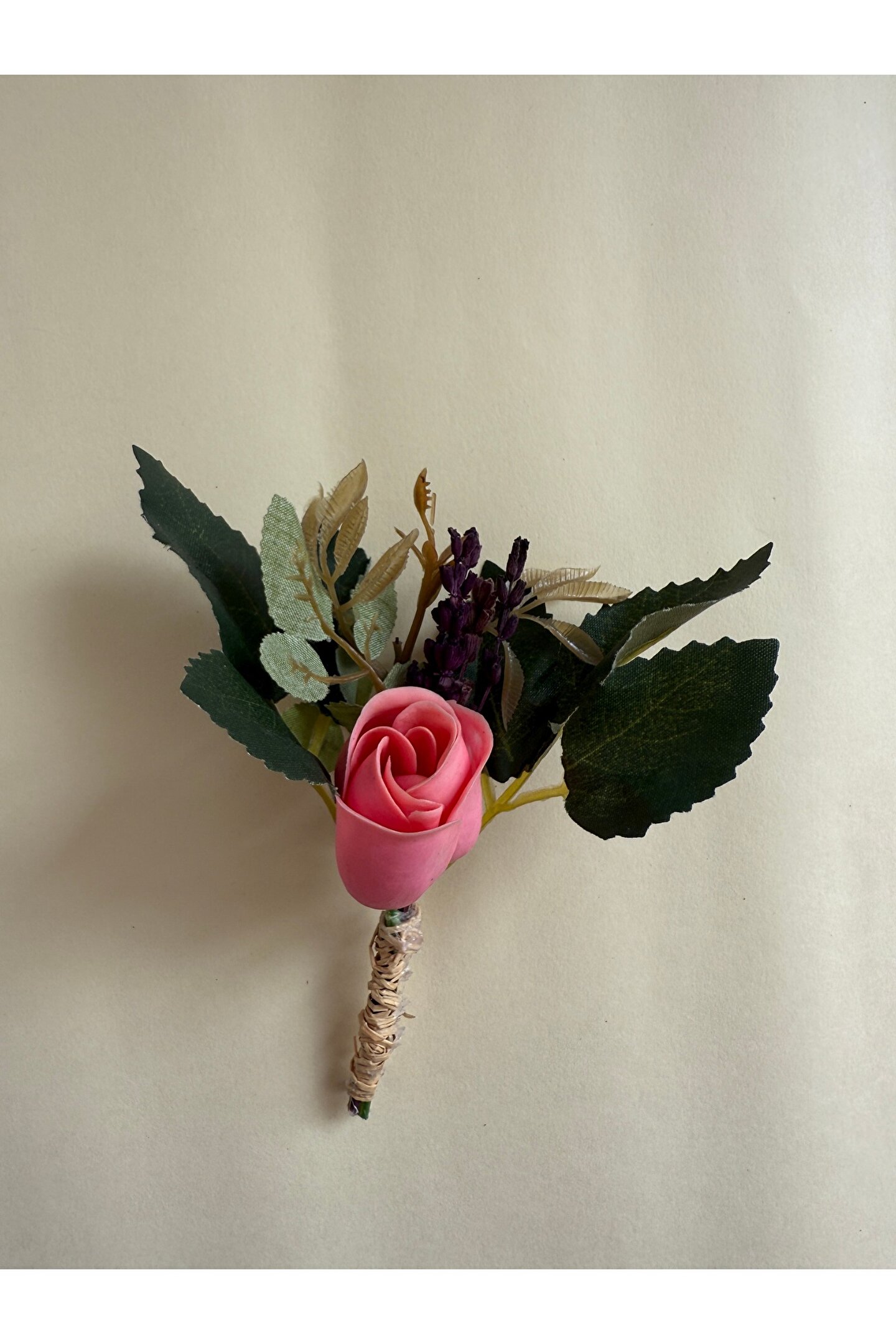 İthal kuru çiçekler ve yapay çiçekler ile hazırlanan özel tasarım damat yaka çiçeği