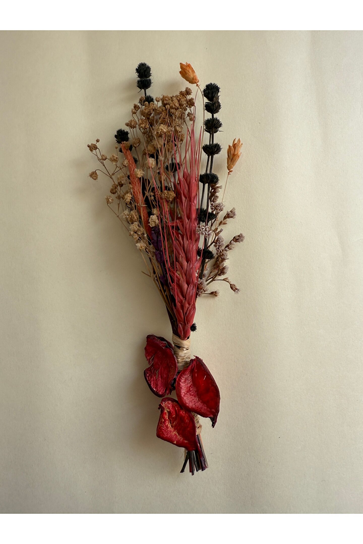 İthal kuru çiçekler ve yapay çiçekler ile hazırlanan özel tasarım damat yaka çiçeği