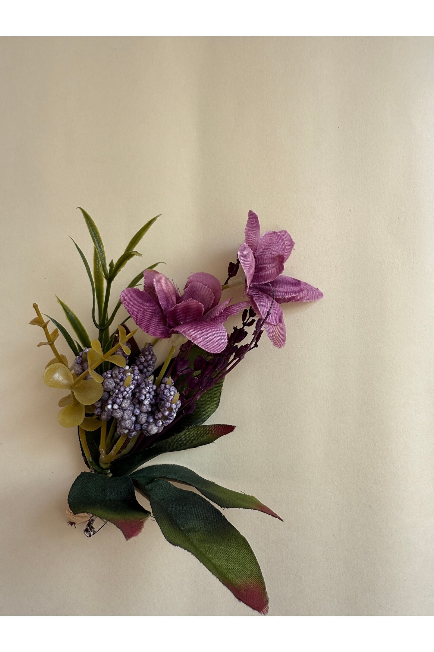 İthal kuru çiçekler ve yapay çiçekler ile hazırlanan özel tasarım damat yaka çiçeği