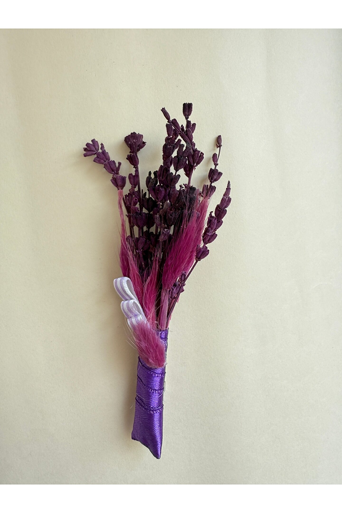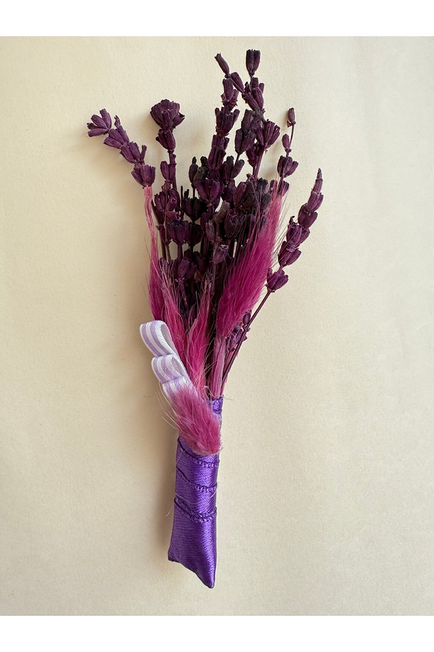 İthal kuru çiçekler ve yapay çiçekler ile hazırlanan özel tasarım damat yaka çiçeği