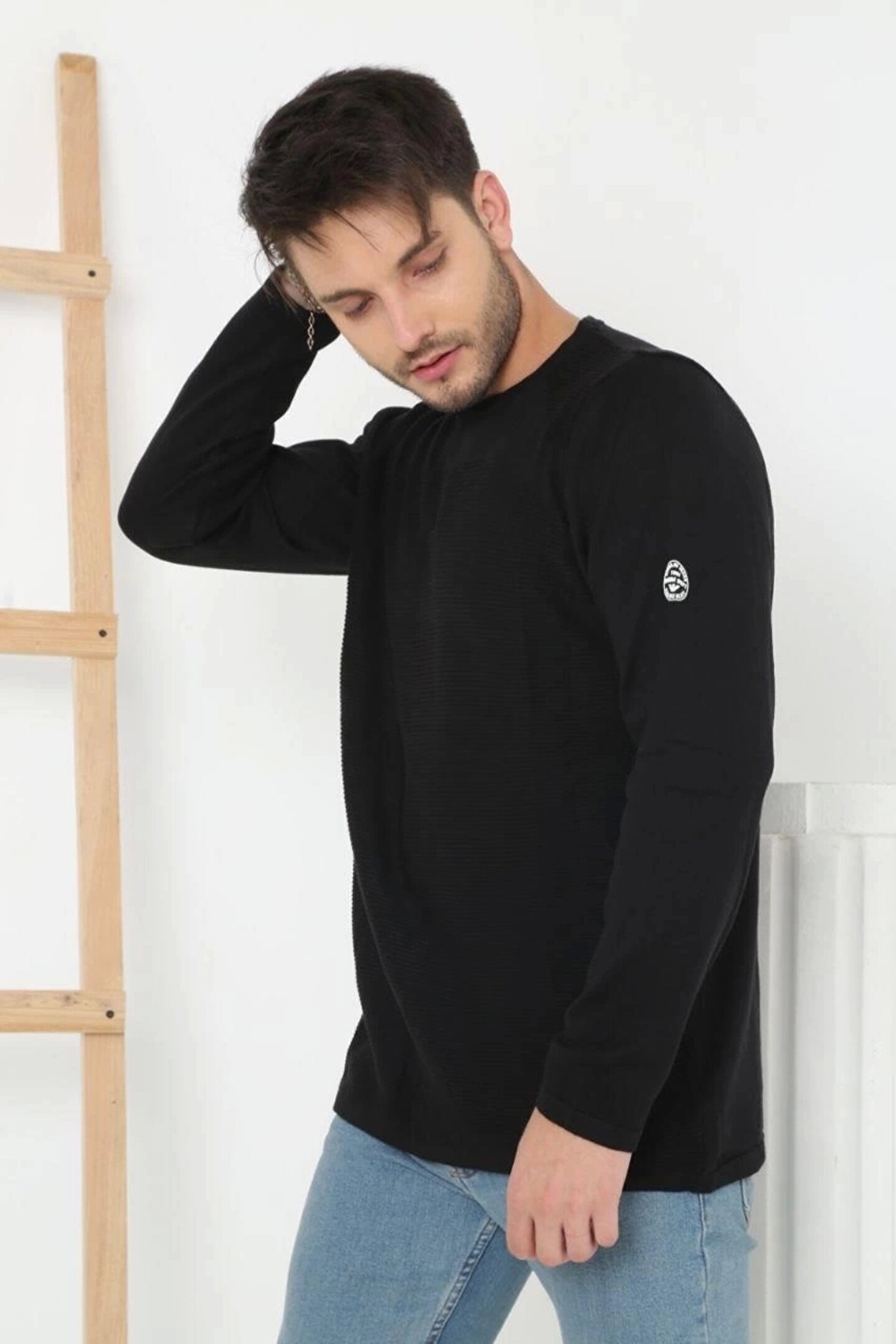 - Günlük kullanım için ideal, rahat ve şık bir görünüm sunan siyah bisiklet yaka erkek tişört.; - Düz dokuma pamuklu kumaşı sayesinde gün boyu konforlu bir deneyim sağlar.; - Cut out detayı ile modern ve trend bir stil oluşturur.; - Orta kalınlıkta kumaşı, mevsim geçişlerinde de tercih edilebilir.; - A-Form Fit kalıbı ile vücuda tam oturur ve şık bir siluet çizer.; - Uzun kollu tasarımı ile mevsim geçişlerinde ideal koruma sağlar.; - Düz deseniyle kolayca kombinlenebilir ve zamansız bir tarz sunar.; - Tüm sezonlar için uygun yapısıyla gardırobunuzun vazgeçilmezi olacak.; - Cepsiz tasarımı, minimalist ve sade bir görünüm sağlar.; - Yetişkin erkekler için özel olarak tasarlanmıştır.; - Regular silueti ile rahat hareket etme özgürlüğü sunar.; - Type 0 yıkama talimatına uygun şekilde kolayca temizlenebilir.; - 193 cm boyundaki uzun tasarımı, farklı vücut tiplerine uyum sağlar.