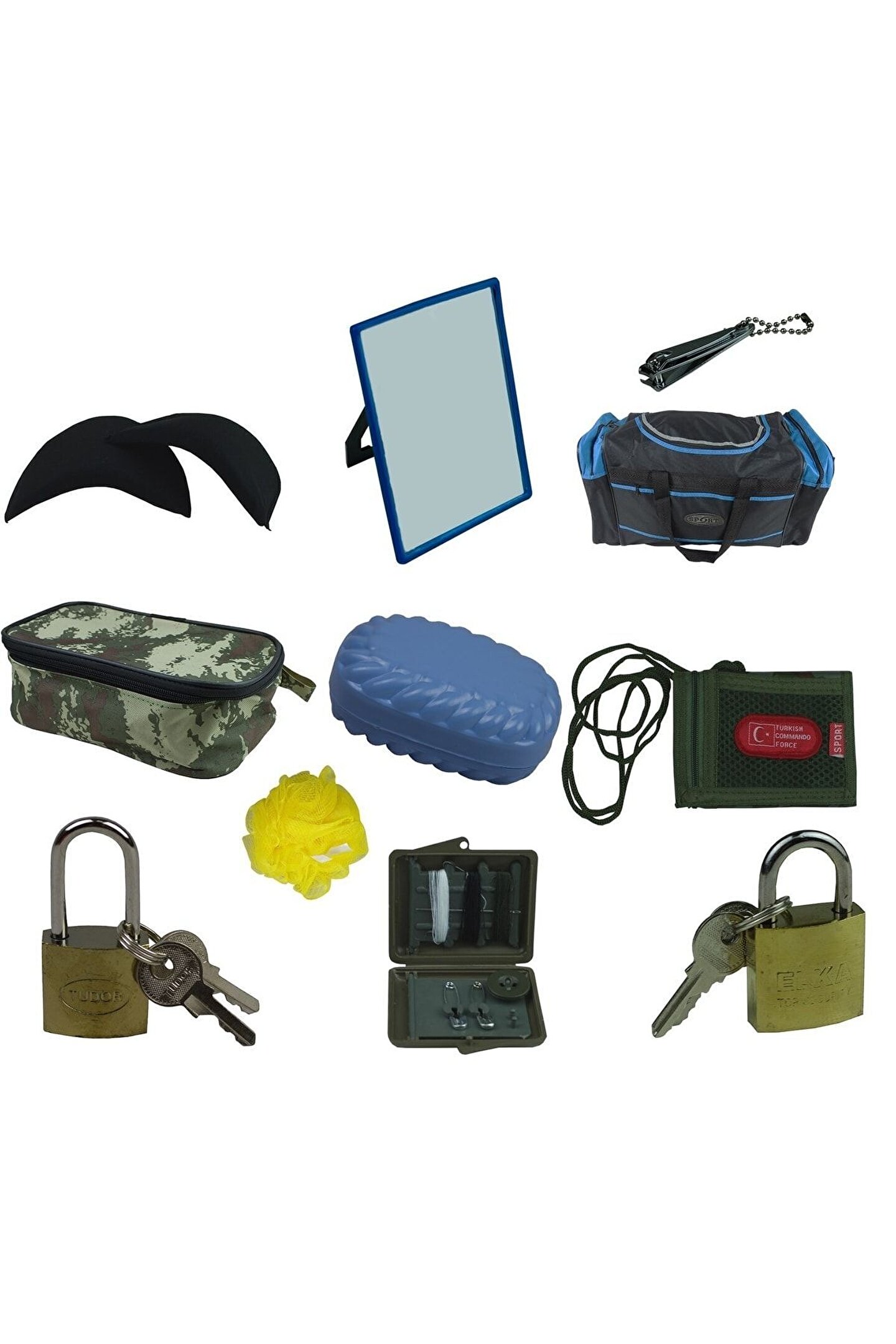 ACEMİ VE BEDELLİ ASKER MALZEMESİ 12 PARÇA SET 12 PARÇA SET ASKERLER İÇİN SET 2 ADET VATKA AYNA TIRNAK MAKAS VALİZZ TRAŞ ÇANTA SABUNLUK CÜZDAN BANYO LİF BOT KİLİT DİKİŞ SET ÇANTA KİLİT