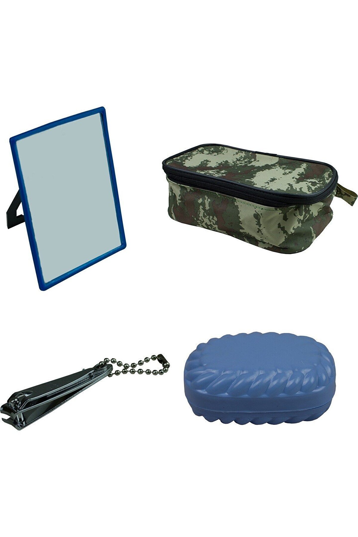 - Dört parçadan oluşan set, banyo rutininizi pratik ve düzenli hale getirir; - Ayna, sabunluk, tırnak makası ve asker malzemeleri içeren bu set, günlük bakım ihtiyaçlarınızı tek bir yerde toplar; - Ayna sayesinde kişisel hijyeninizi hızlı ve kolay bir şekilde tamamlayabilirsiniz; - Tırnak makası ile tırnaklarınızı kesmek için ihtiyacınız olan her şey elinizin altında; - Dayanıklı malzemelerden üretilmiş olup uzun süreli kullanım için uygundur;