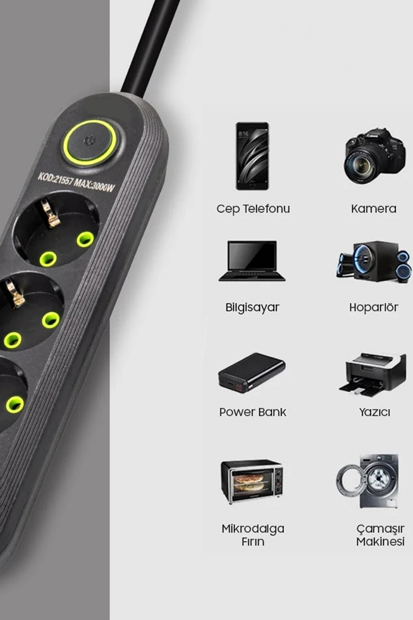 - USB bağlantı noktası sayesinde, cihazlarınızı kolayca şarj edebilirsiniz.; - Üç adet prizi ile birden fazla elektronik cihazı aynı anda kullanma imkanı sunar.; - Çin menşeli olup ithalatçı garantisi altında güvenle kullanılabilir.; - Akım koruması özelliği ile enerji akışını kontrol ederek aşırı yüklenmelerden korur.;