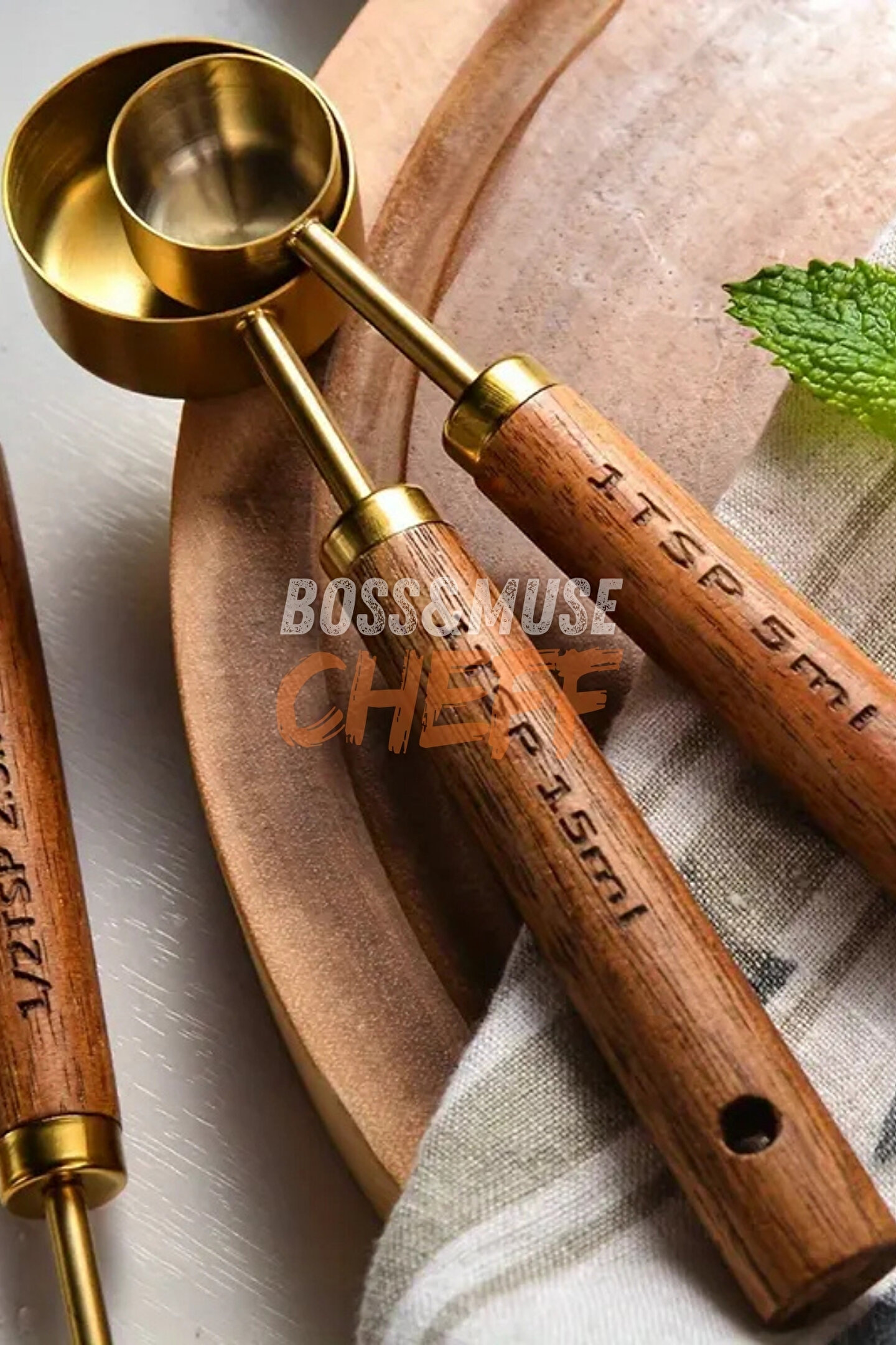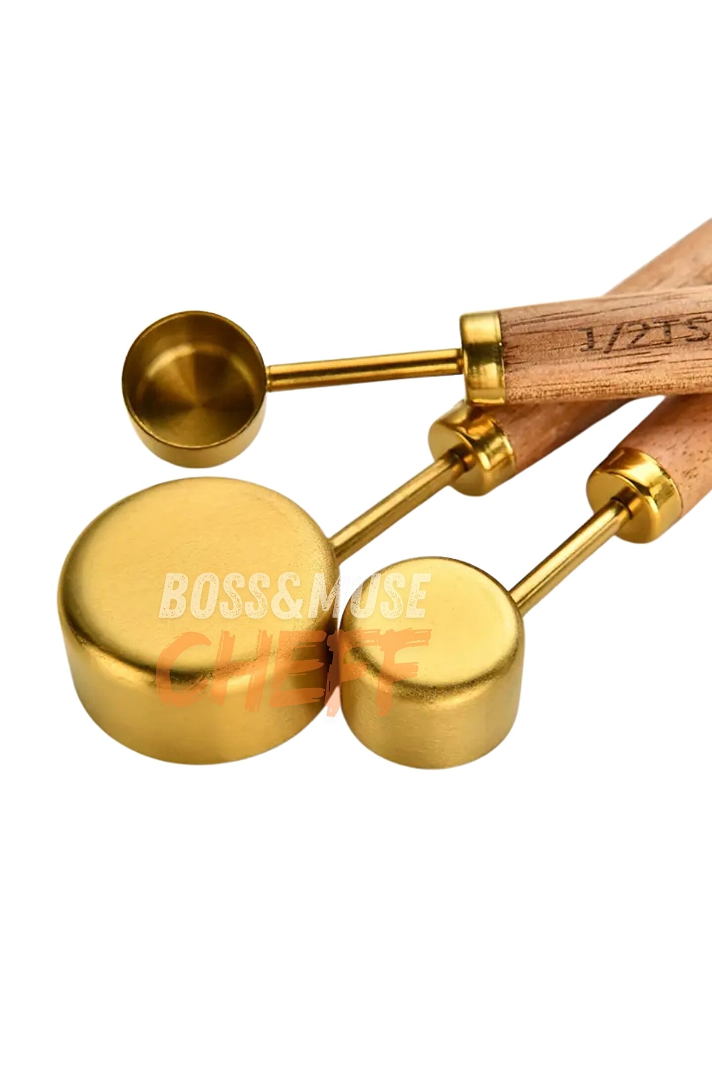 bossandmuse 4 Adet Büyük Boy Paslanmaz Çelik Ahşap Saplı Ölçü Kaşığı Seti Ölçü Kabı Hediyeli