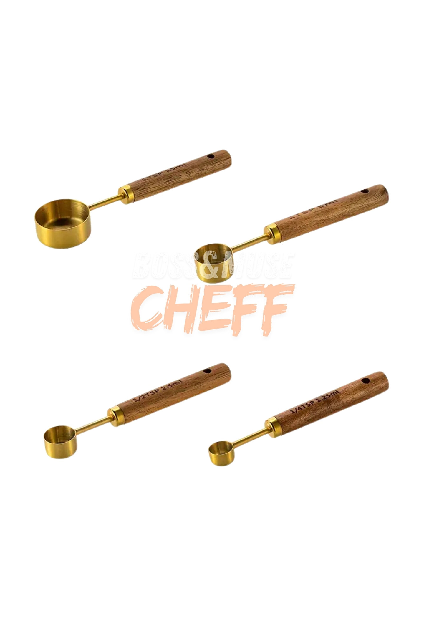 bossandmuse 4 Adet Büyük Boy Paslanmaz Çelik Ahşap Saplı Ölçü Kaşığı Seti Ölçü Kabı Hediyeli
