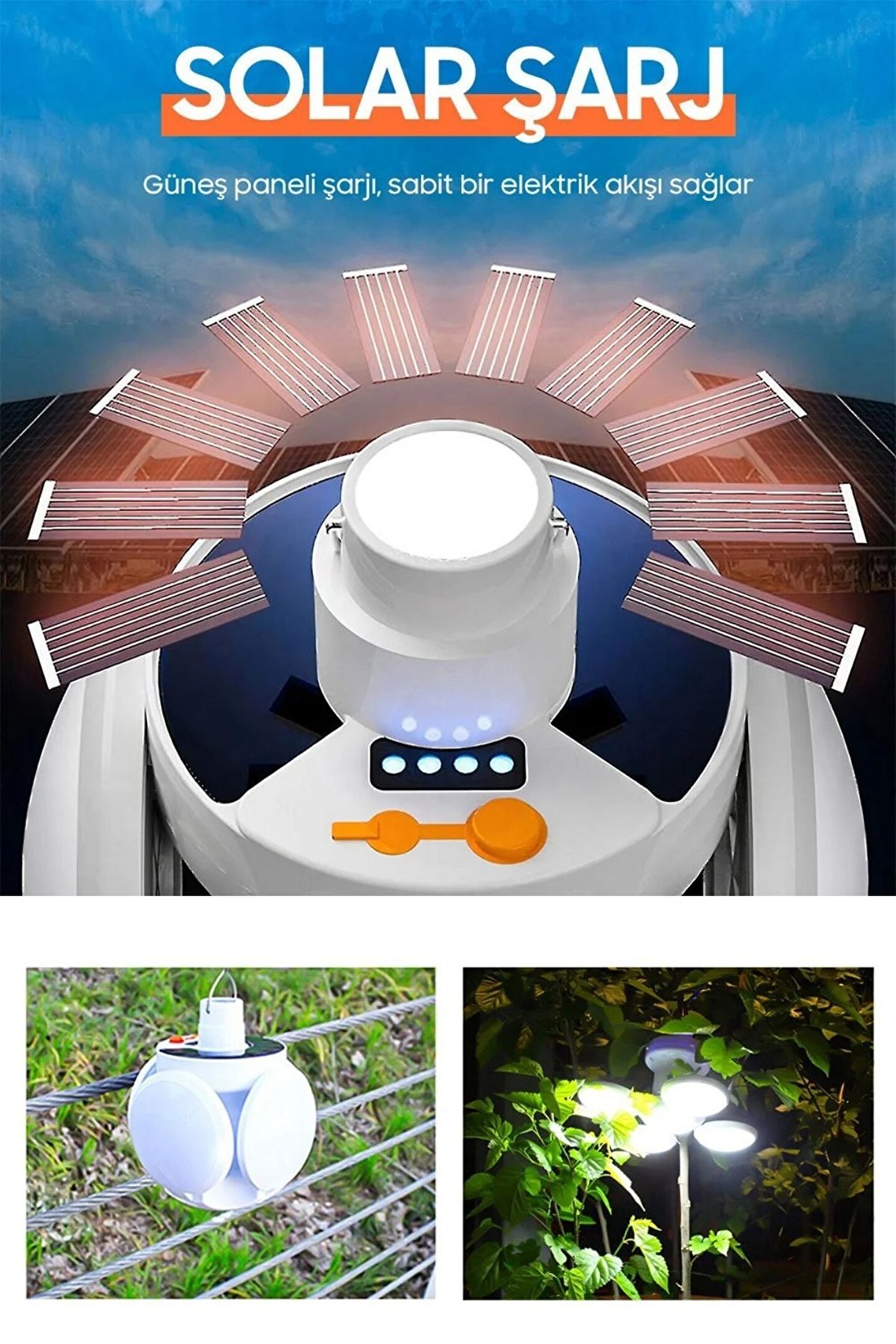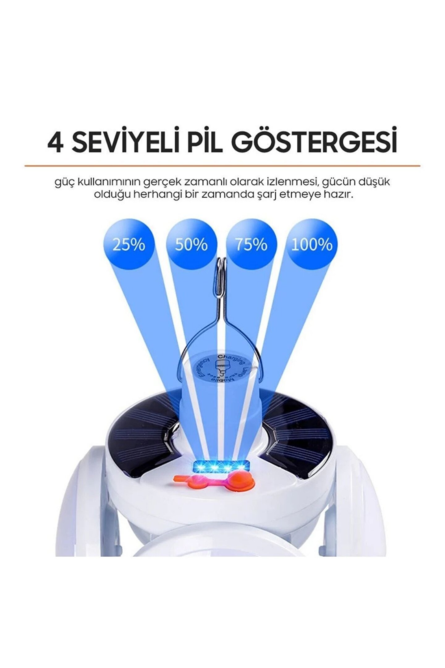 bossandmuse 4 Kol 1 Gövde Solar Güneş Enerjisi İle Şarj Olabilen Kanca ve Pil Göstergeli Kamp ve Bahçe Işığı