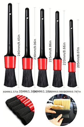 bossandmuse 6 Parça Oto Motor Detay Temizlik Fırçası Kırmızı Siyah Kıl Fırça