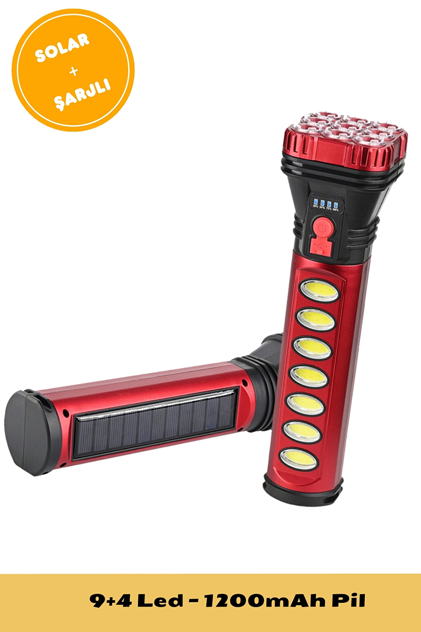 9+4 Ledli Solar + Şarjlı El Feneri Kamp Balıkçı Acil Durum Feneri