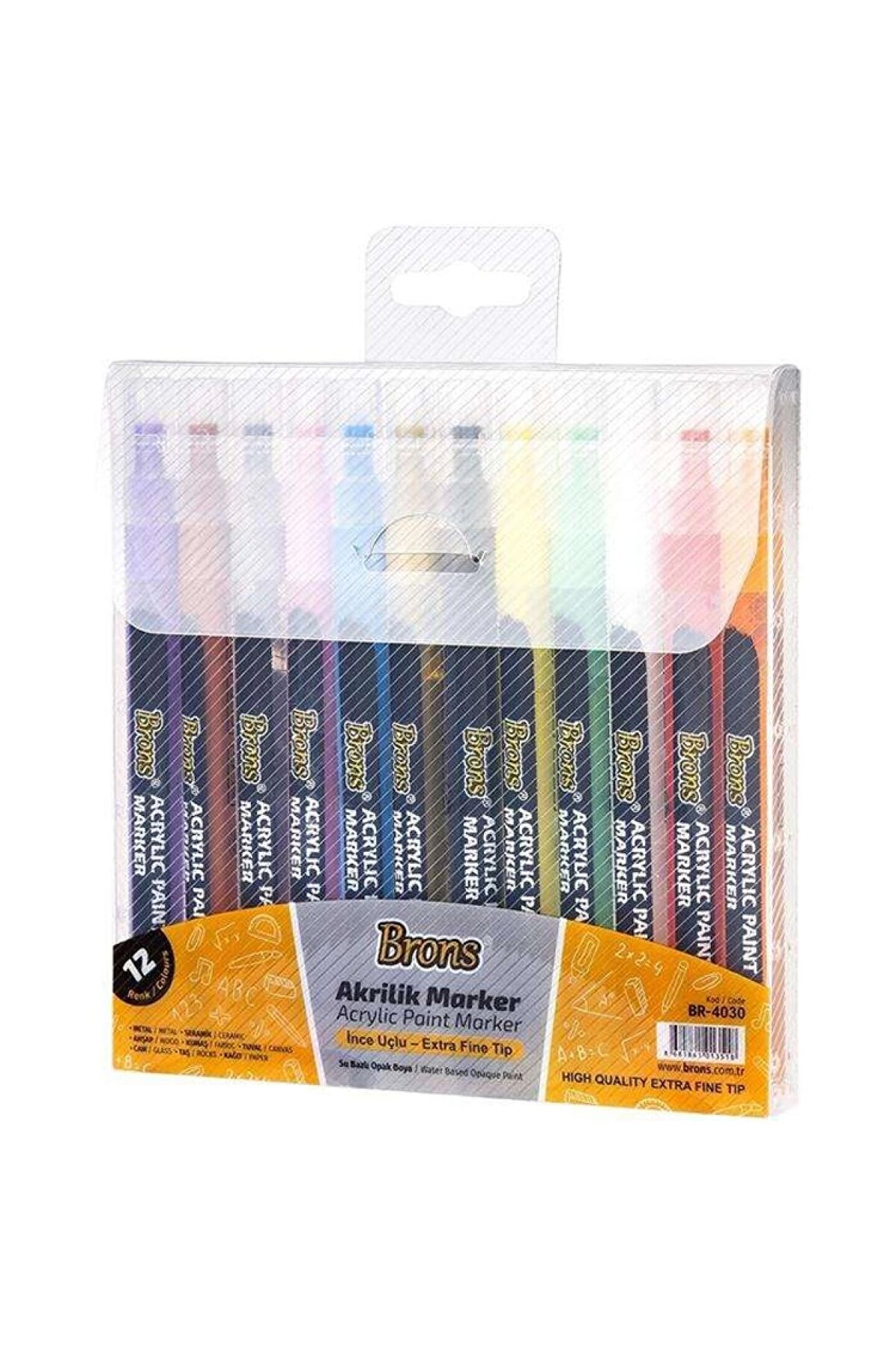 Brons BR-4030 AKRİLİK MARKER KALEM İNCE UÇ 12Lİ SET