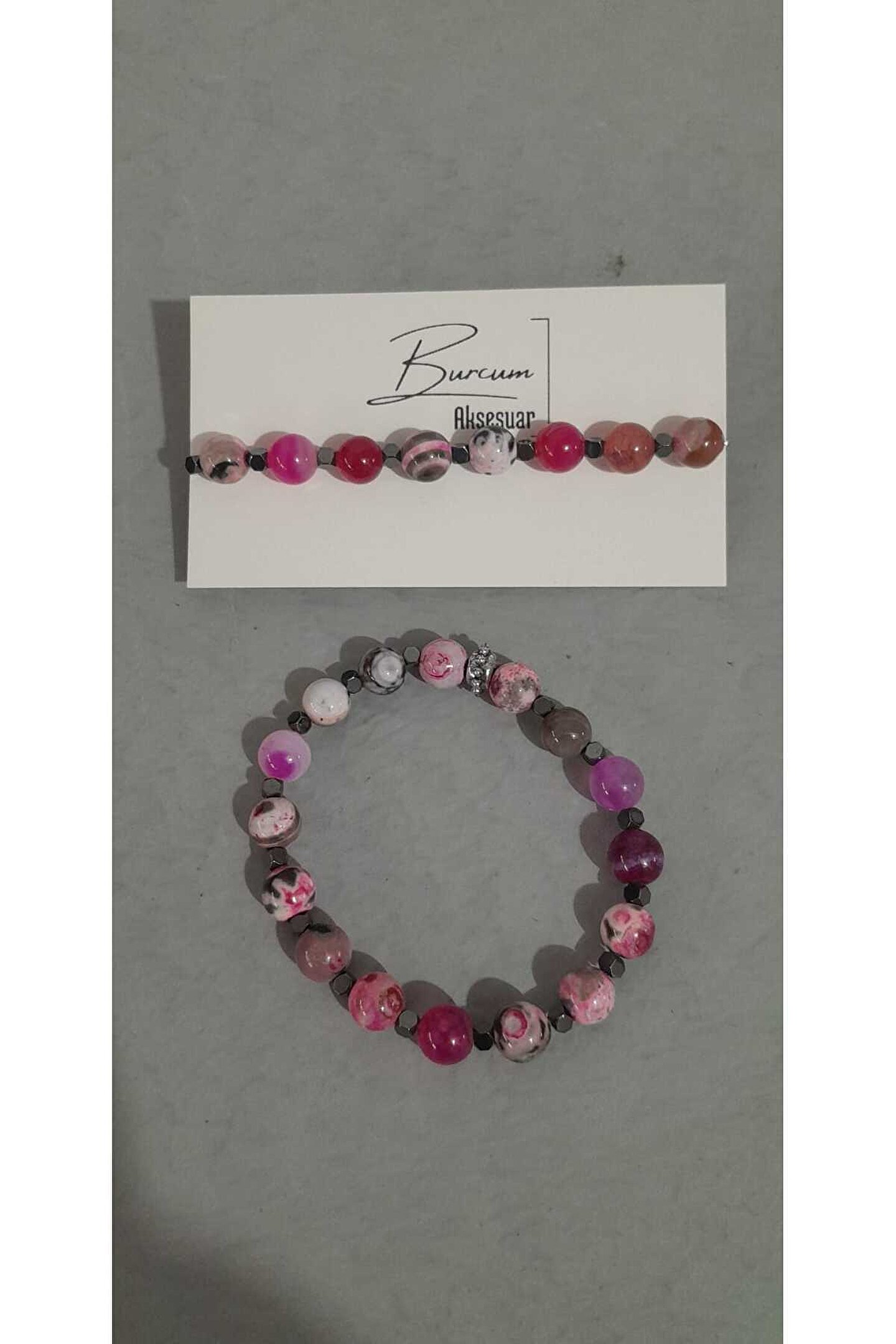 - Pembe akik taşı, hem doğal güzelliği hem de şıklığı ile dikkat çeker.; - Materyal bileşenindeki küçük taşlar hematit taşından oluşur, bu da bilekliğin dayanıklılığını artırır.; - Unisex tasarımı sayesinde herkes tarafından rahatlıkla kullanılabilir; hem kadınlar hem de erkekler için idealdir.; - Türkiye menşeli olmasıyla yerel kaynakların değerli taşlara dönüştürülmesine katkı sağlar.; - Yetişkin yaş grubuna hitap eden bu bileklik, günlük kullanım için uygundur ve zarif görünümüyle öne çıkar.; - Doğal taş kullanımı, her parçaya benzersiz bir karakter kazandırırken aynı zamanda sürdürülebilirliği destekler.; - Hematit materyali sayesinde bileklik, uzun süreli kullanım için dayanıklılık sunar.