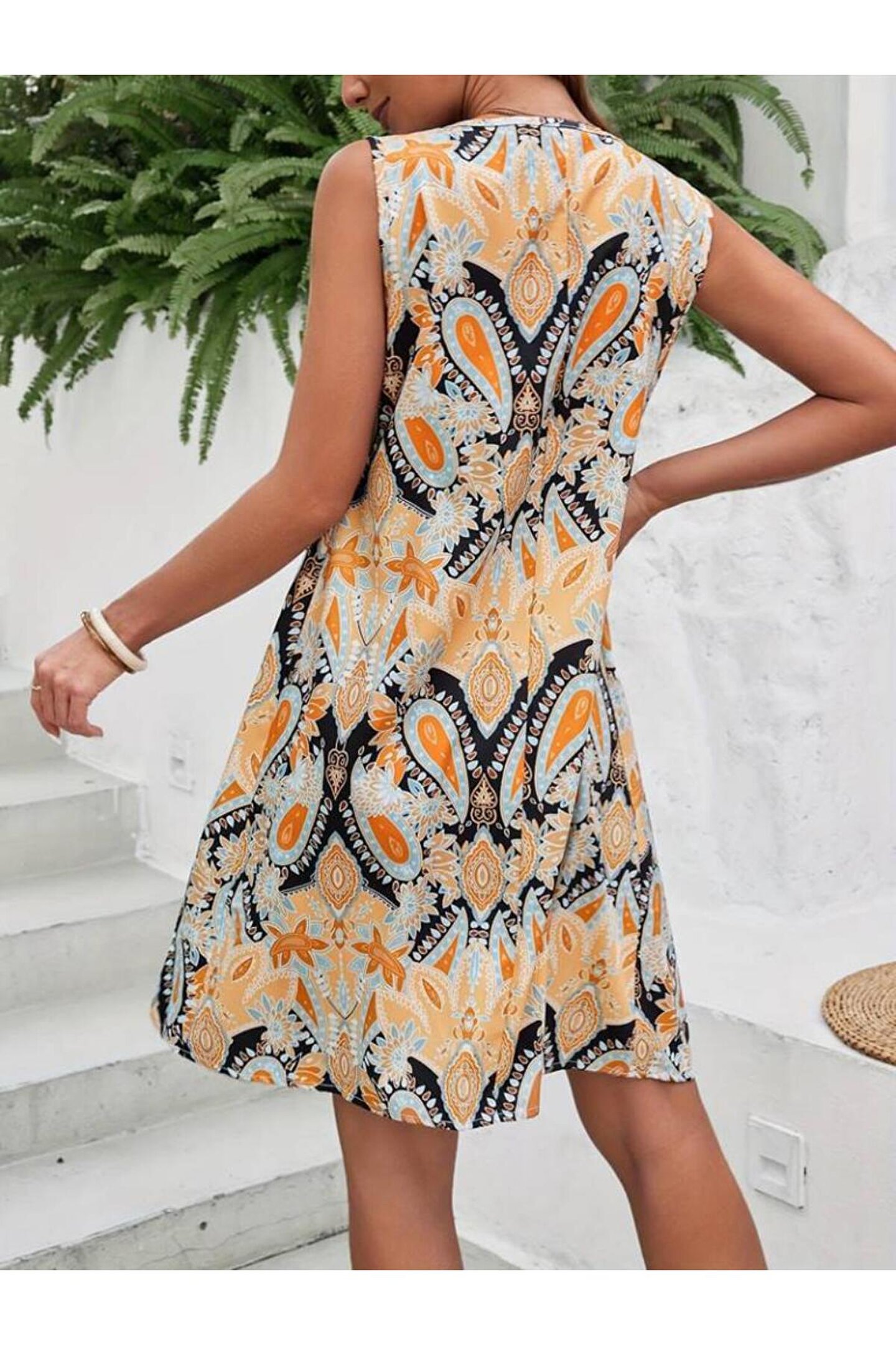 Kadın Sıfır Kol Yuvarlak Yaka çiçek Desenli Süprem Elbise