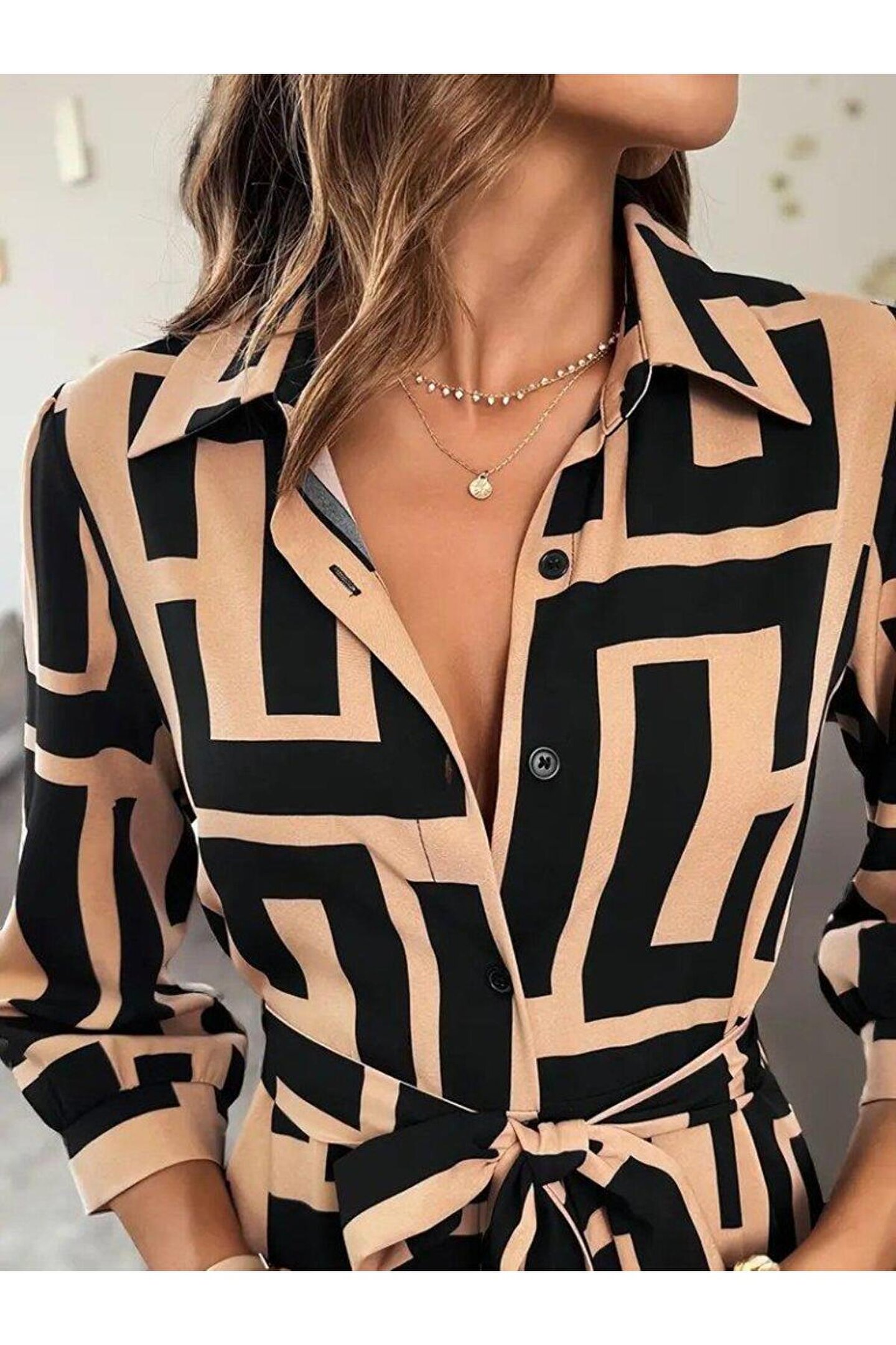 Kadın Uzun Kollu Yakalı önden Düğmeli Uzun Süprem Elbise
