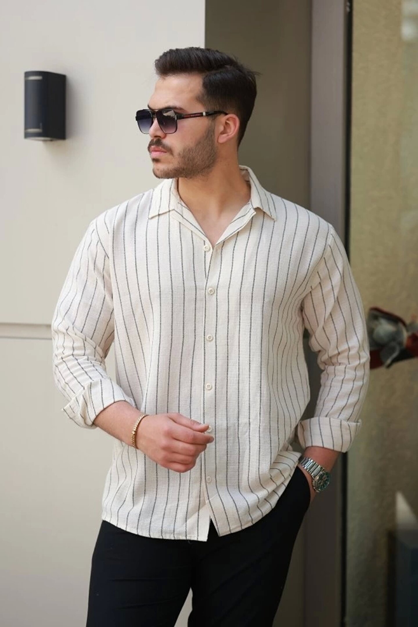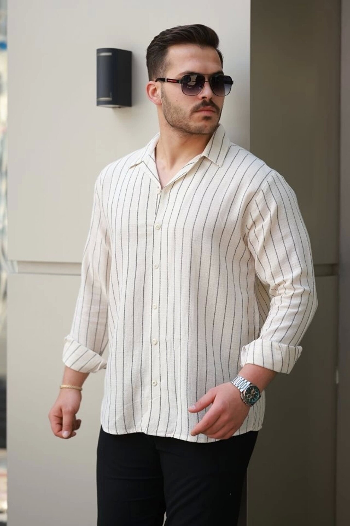 Butik Erkek çizgili Keten Gömlek