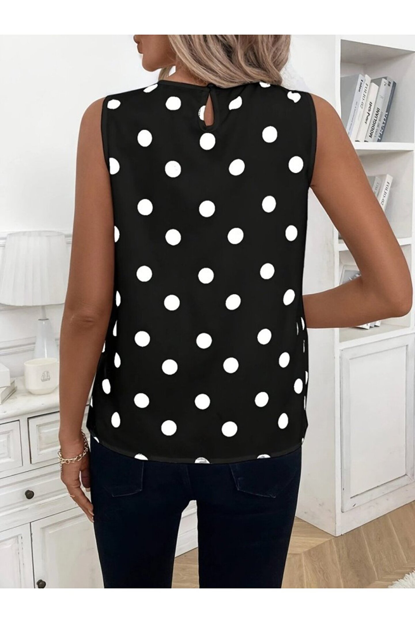 Butik Kadın Askılı Yakası Büzgülü Puantiyeli Atlas Bluz