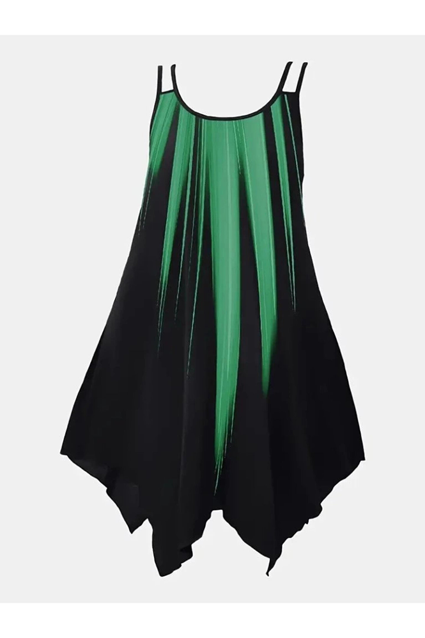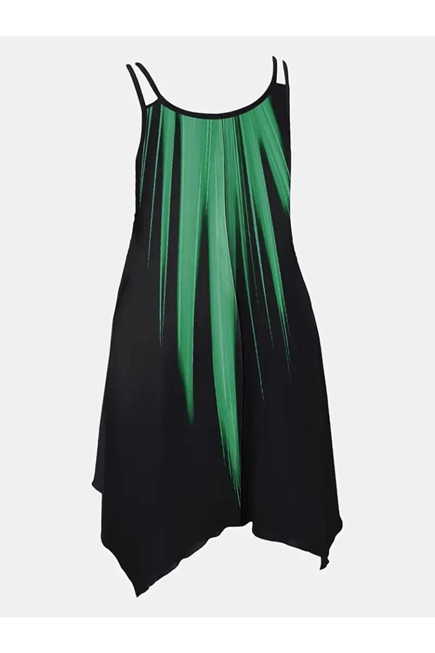Butik Kadın Askılı Yuvarlak Yaka Asimetrik Detaylı Desenli Süprem Elbise
