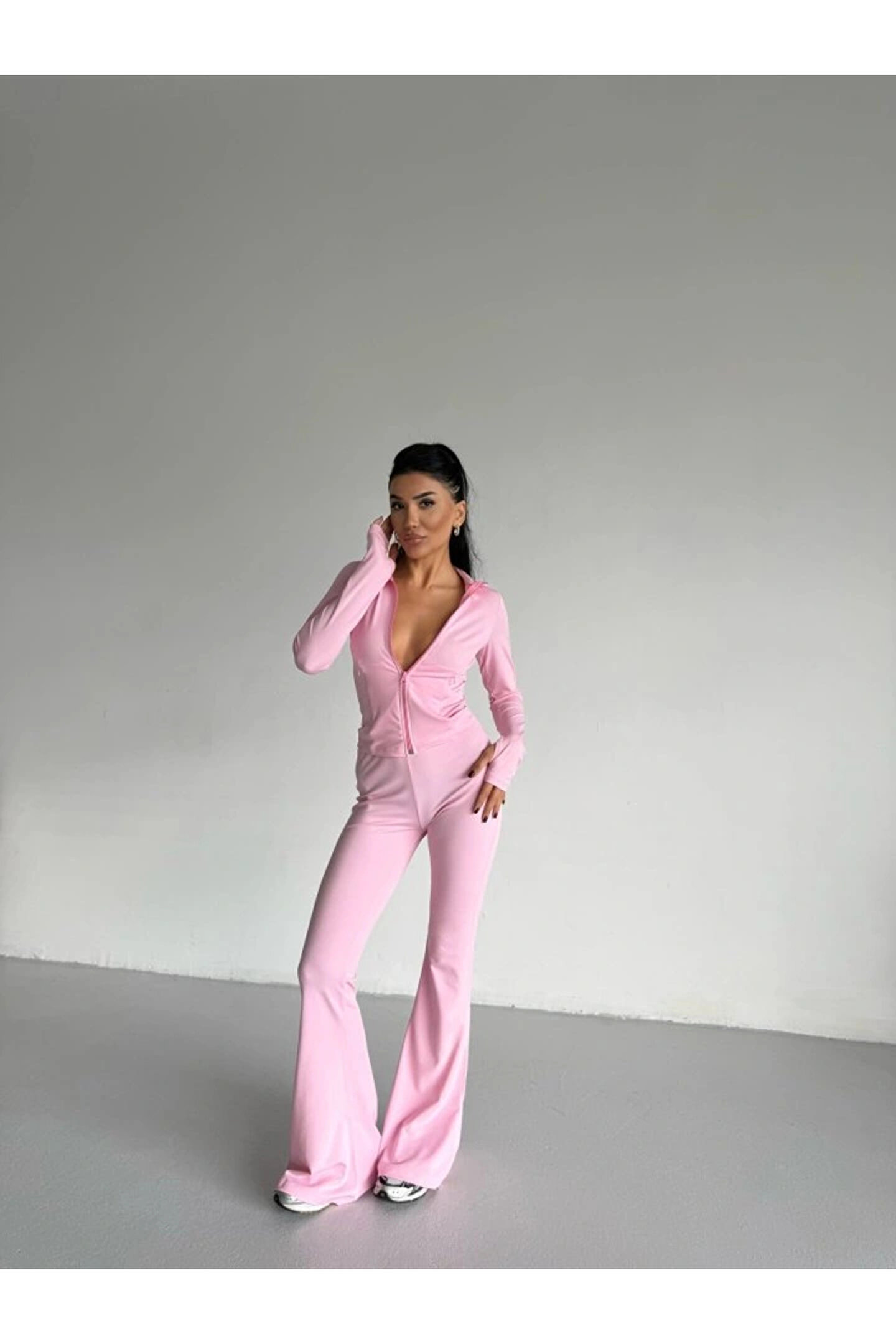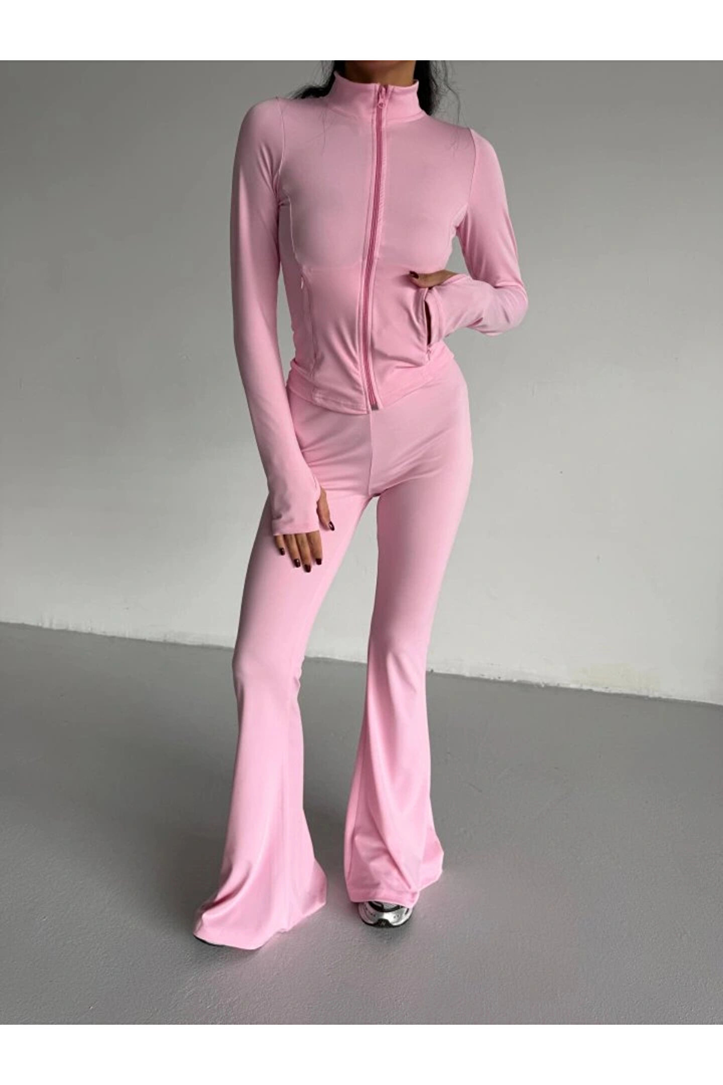 Butik Kadın Balıkçı Yaka Cep Detaylı Ceket Ve Ispanyol Paça Spor Ikili Takım