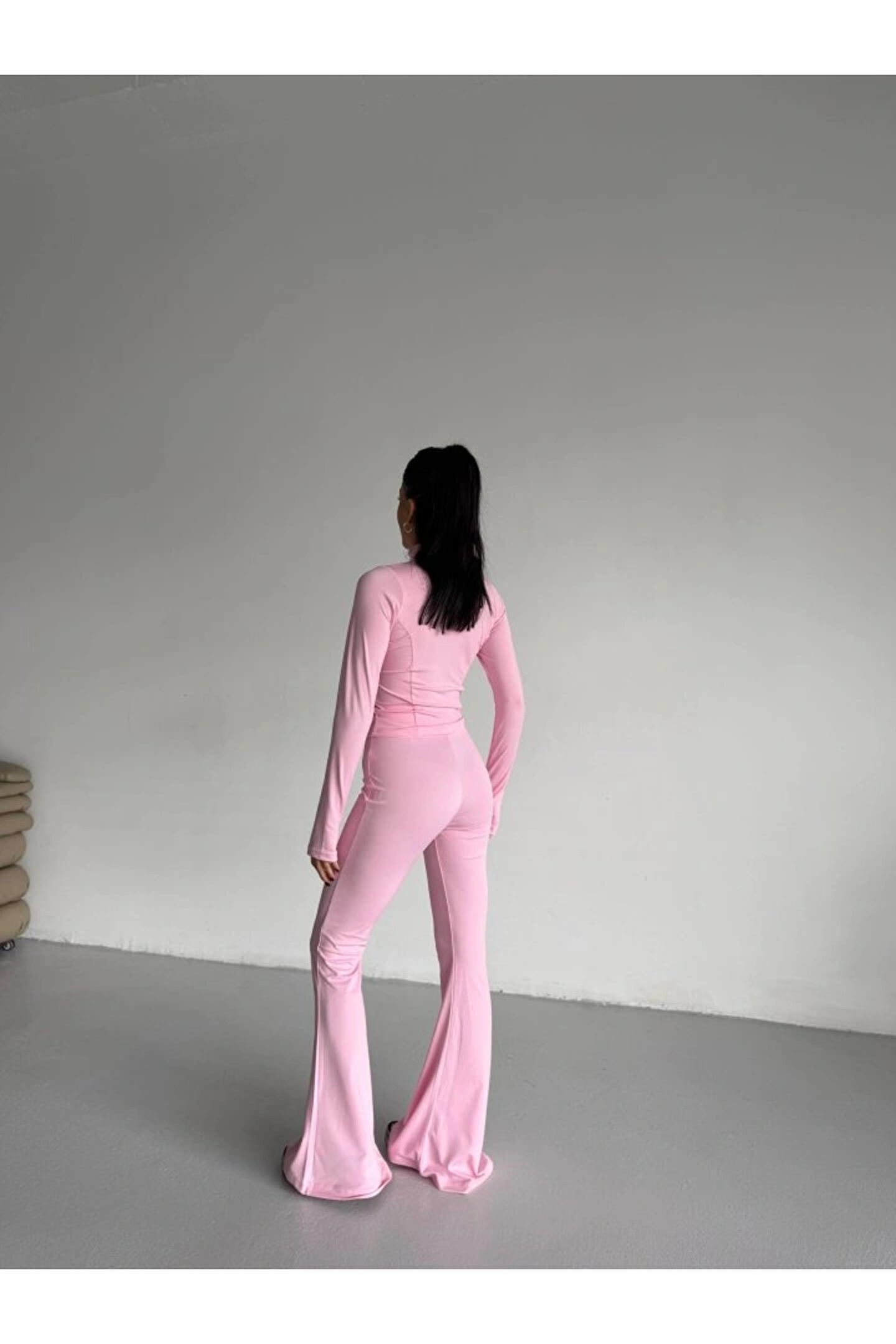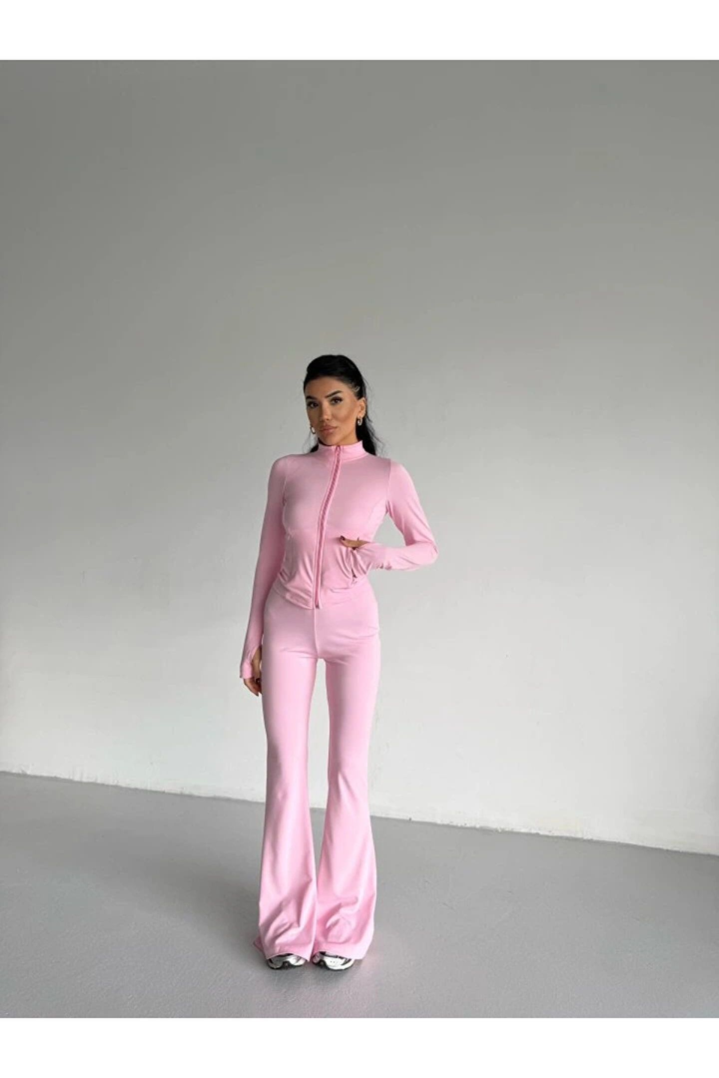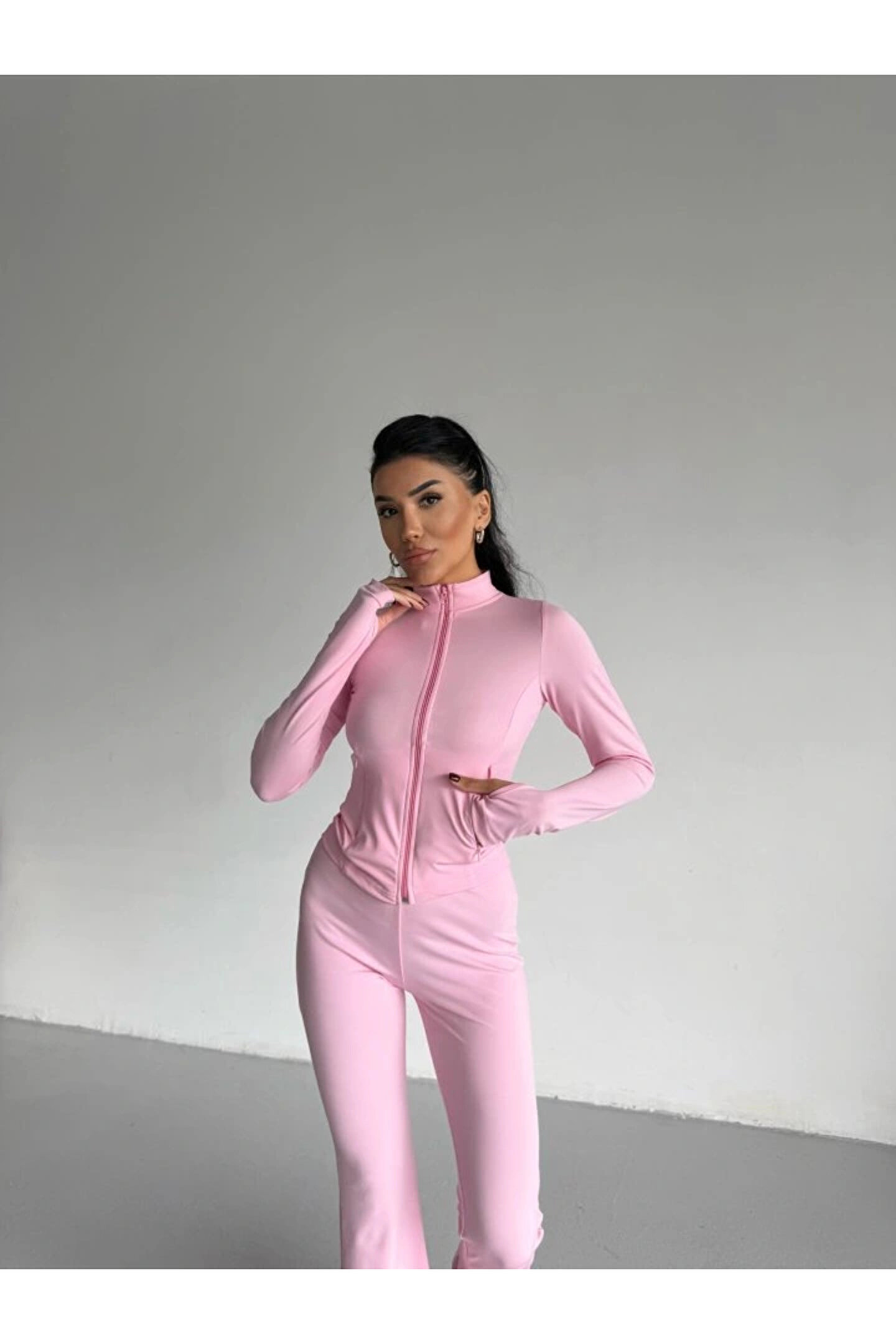 Kadın Balıkçı Yaka Cep Detaylı Ceket Ve Ispanyol Paça Spor Ikili Takım