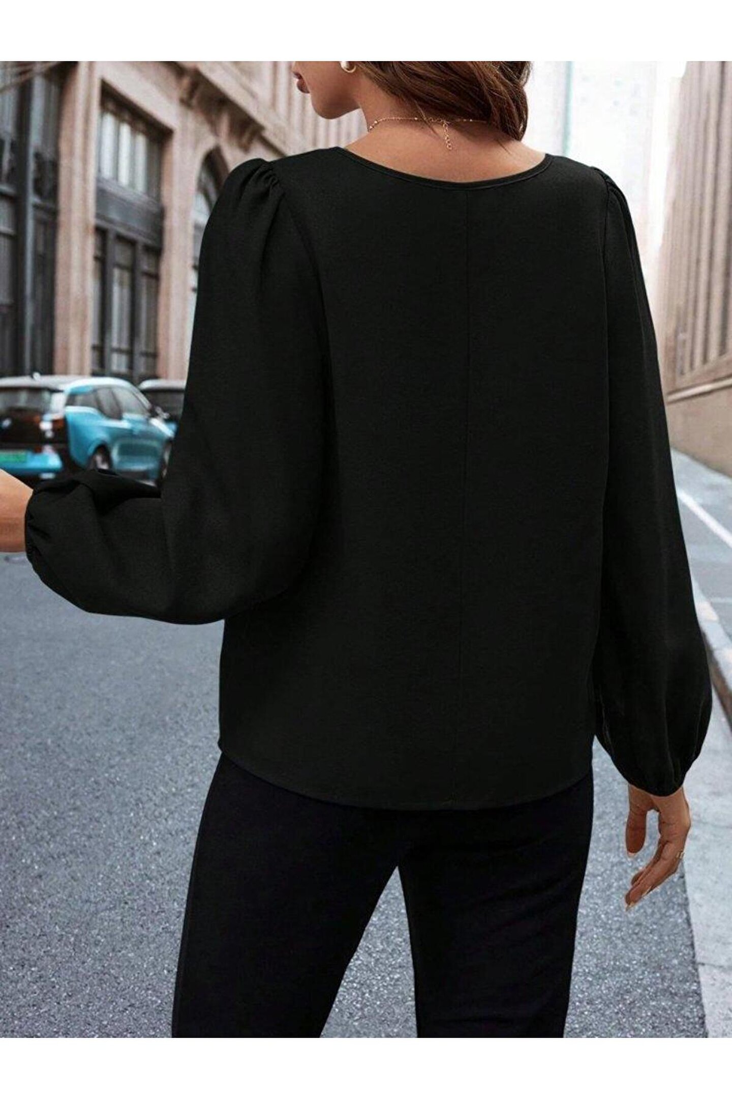 Kadın Uzun Kollu Damla Detaylı Ithal Krep Bluz
