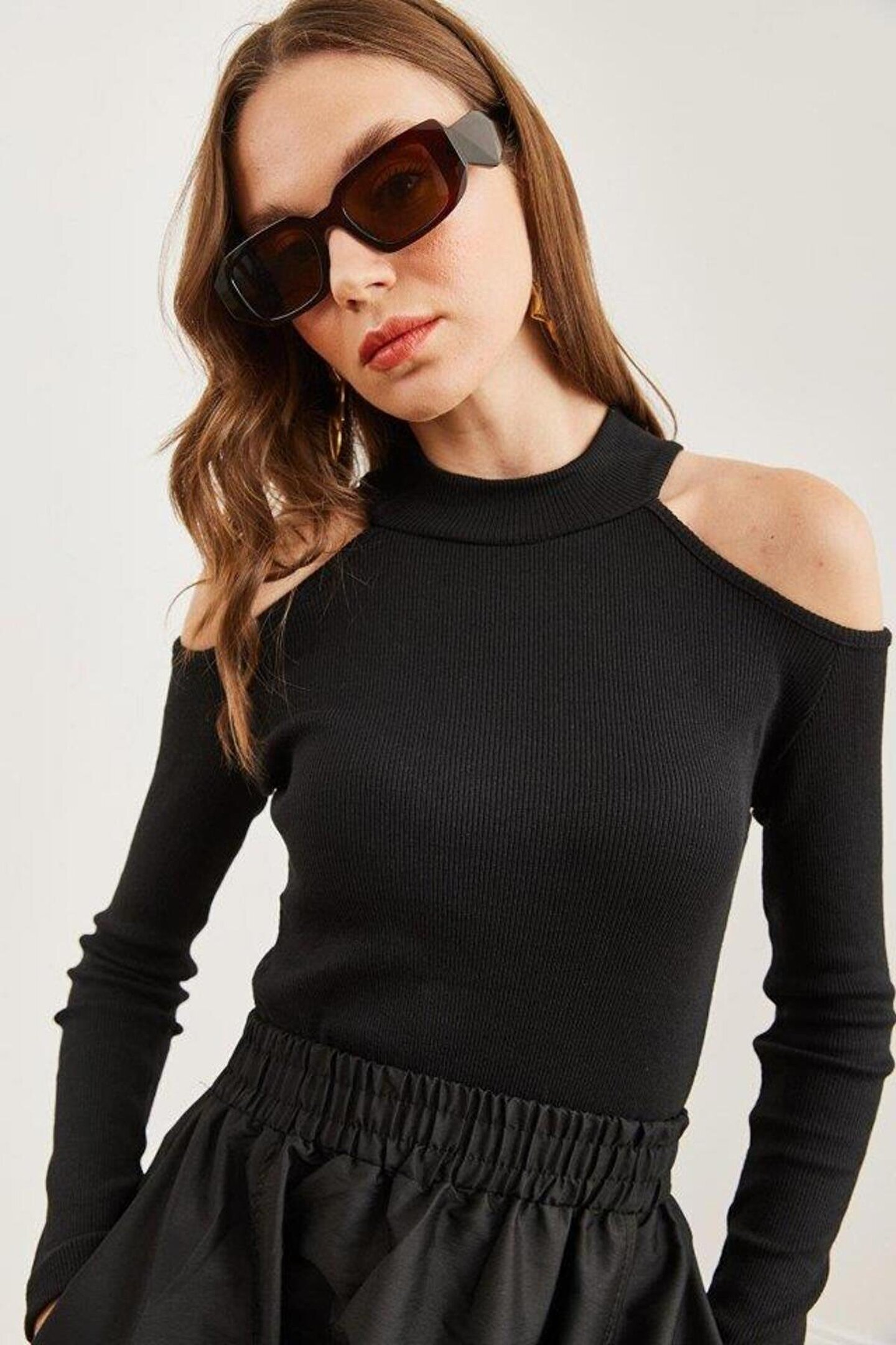 Butik Kadın Uzun Kollu Omuz Dekolteli Kaşkorse Kumaş Bluz