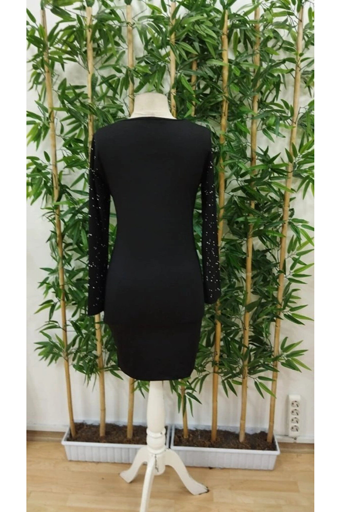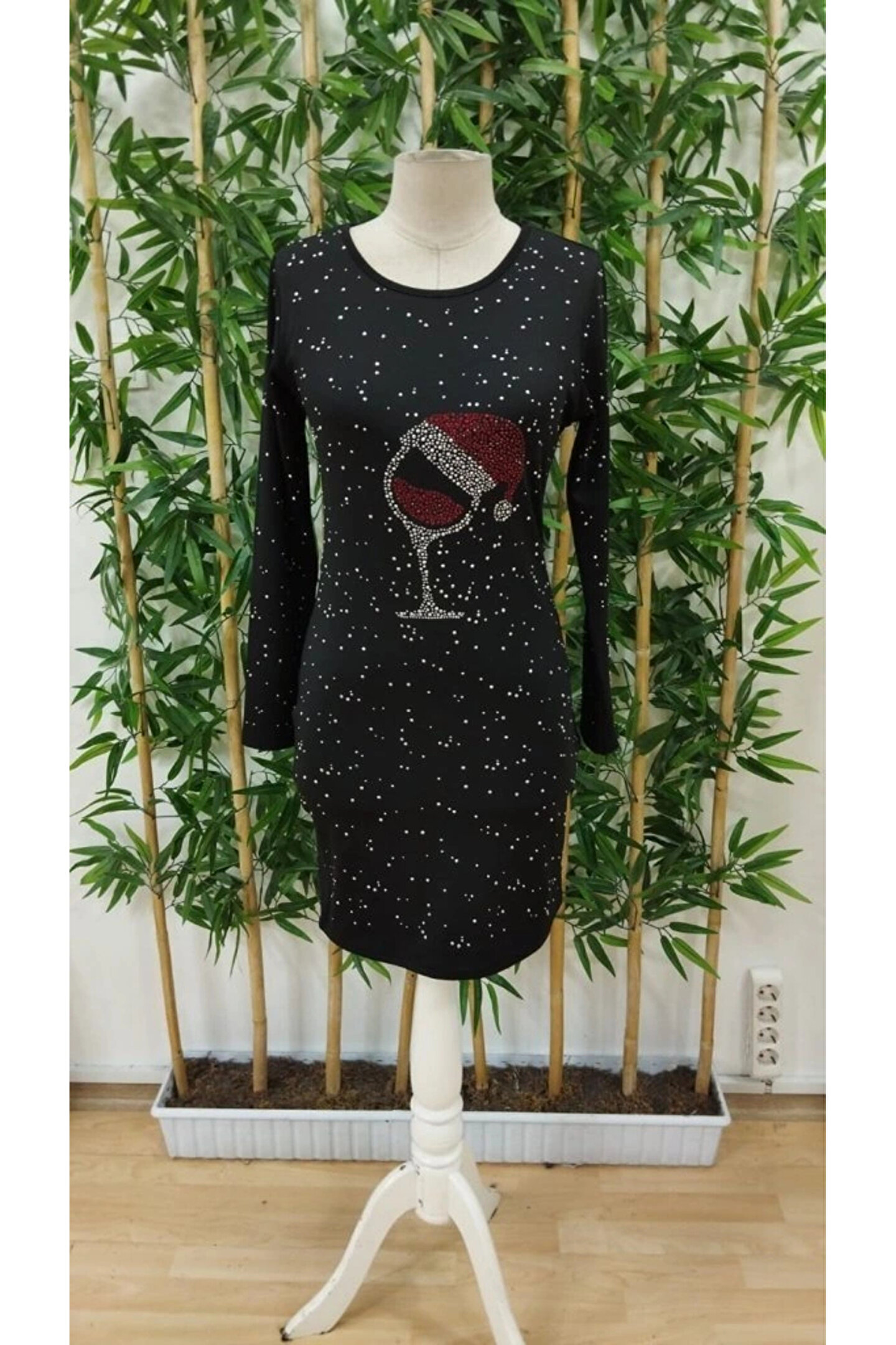 Butik Kadın Uzun Kollu Taş Kadeh Baskı Dalgıç Mini Boy Elbise