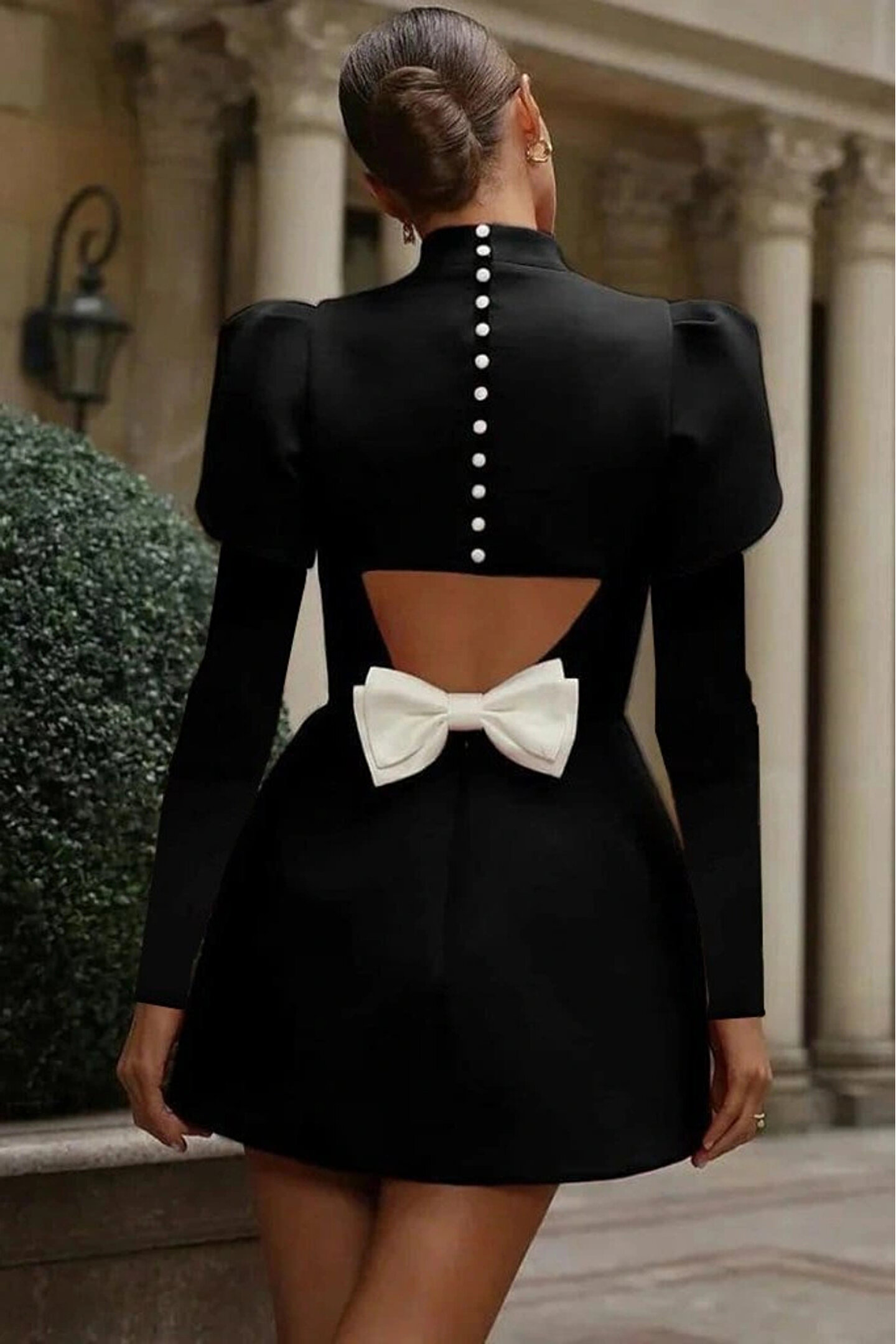 Butik Kadın Uzun Kollu Yarı Balıkçı Yaka Arkadan Kurdela Detaylı Mini Atlas Elbise