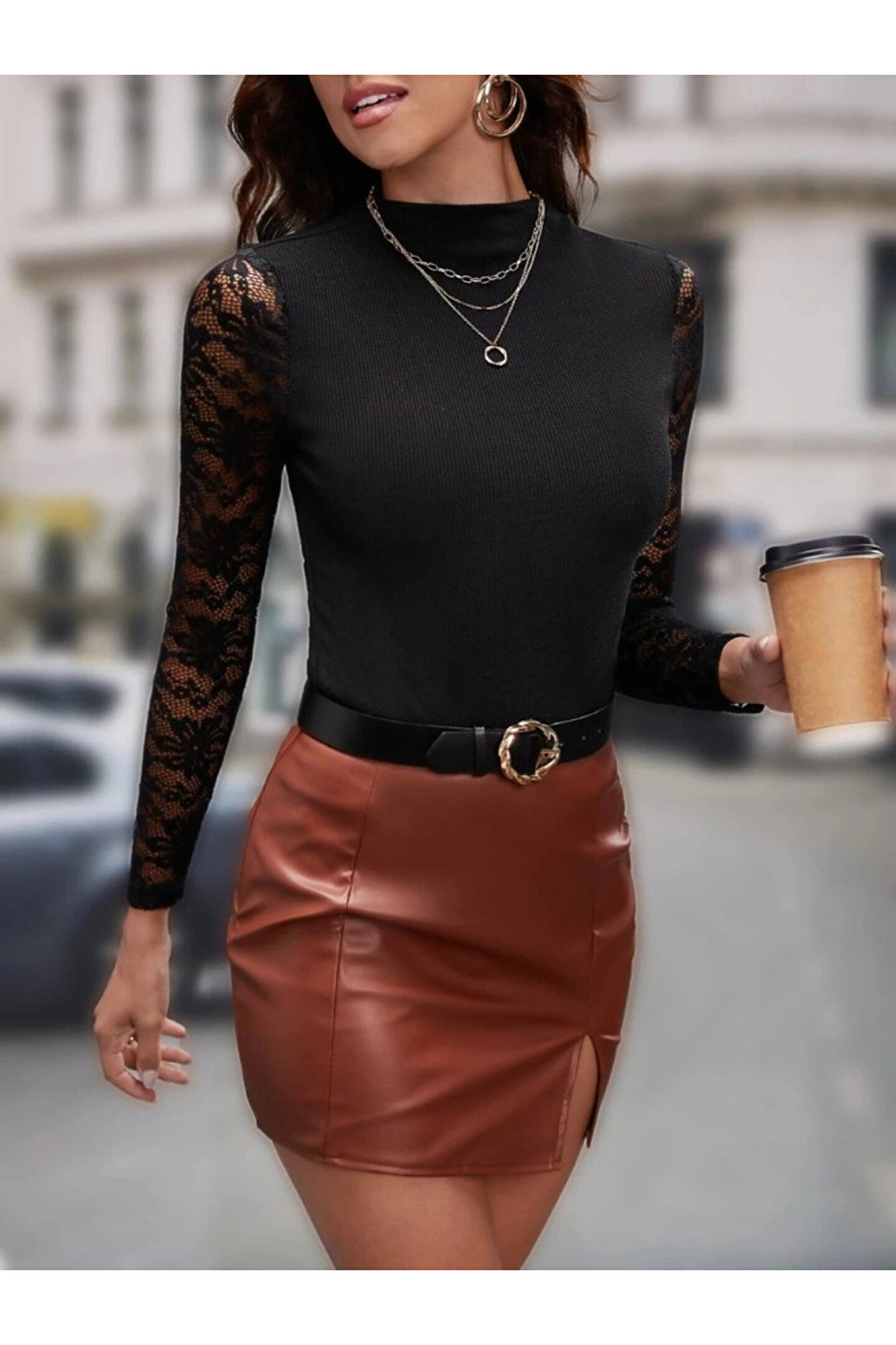 Kadın Uzun Kollu Yarı Balıkçı Yaka Tüllü Kaşkorse Bluz