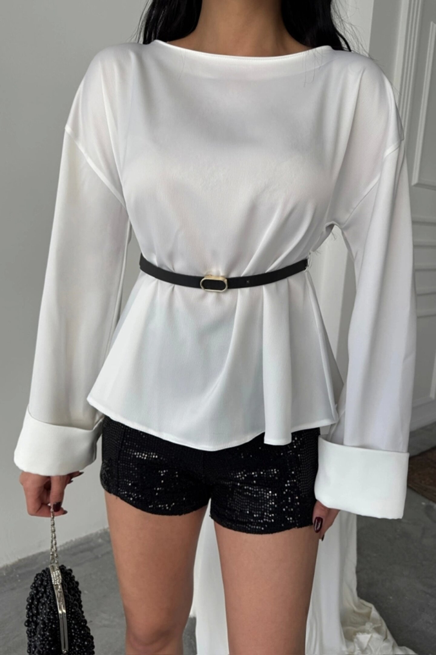 Butik KEMER DETAYLI SATEN BLUZ - Beyaz