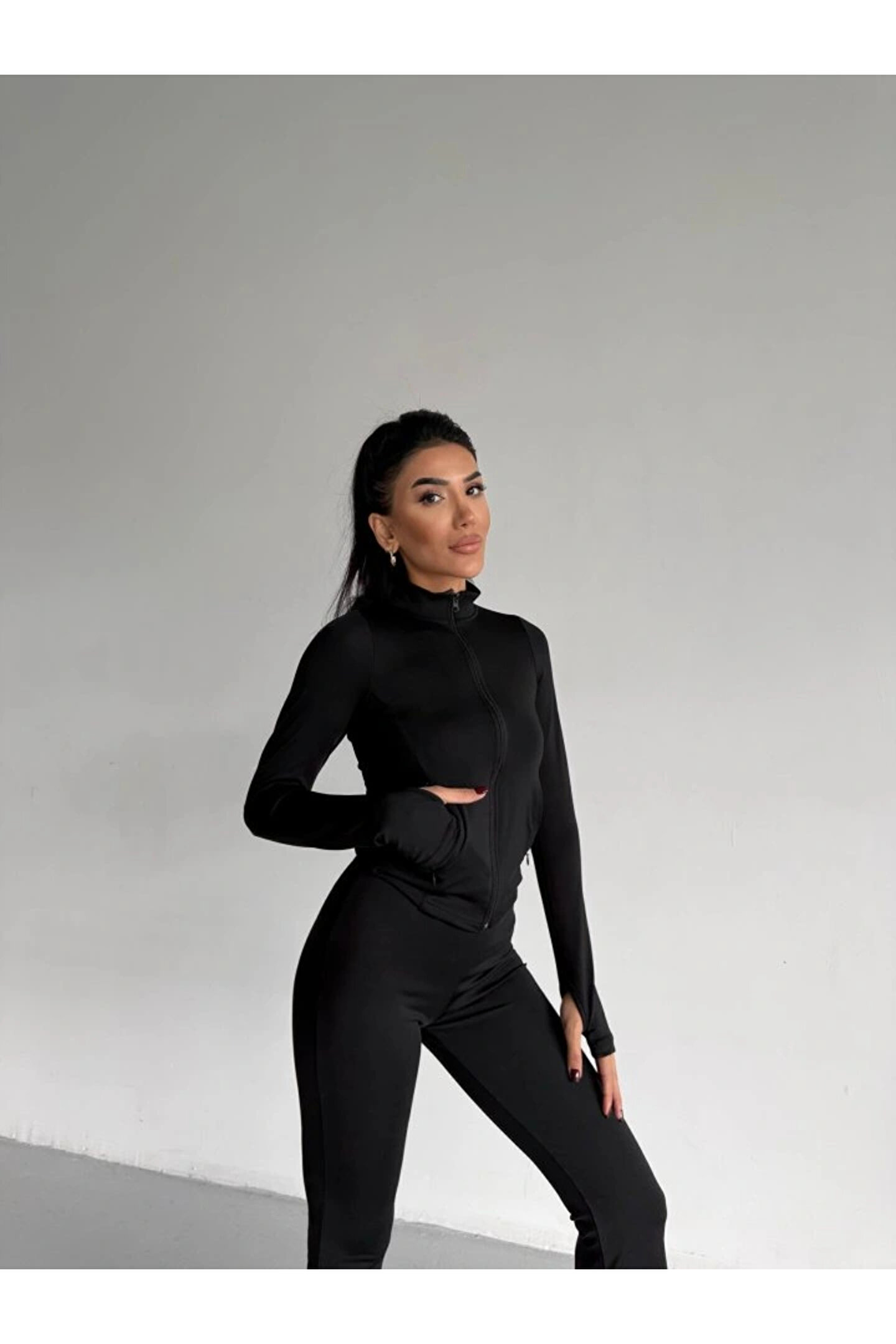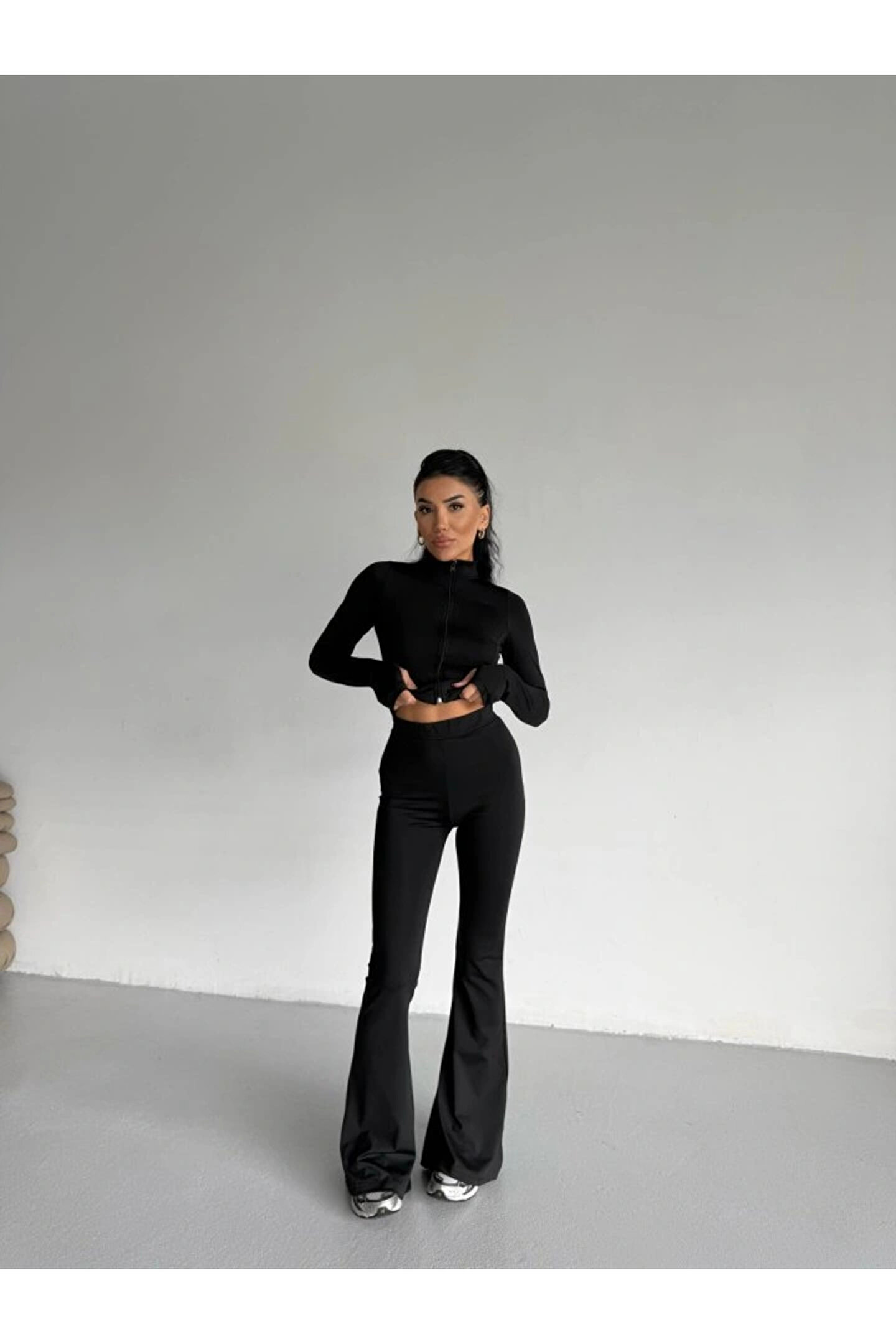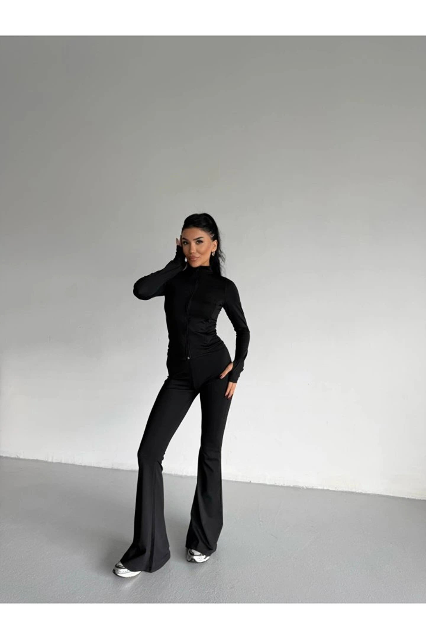 Kadın Balıkçı Yaka Cep Detaylı Ceket Ve Ispanyol Paça Spor Ikili Takım