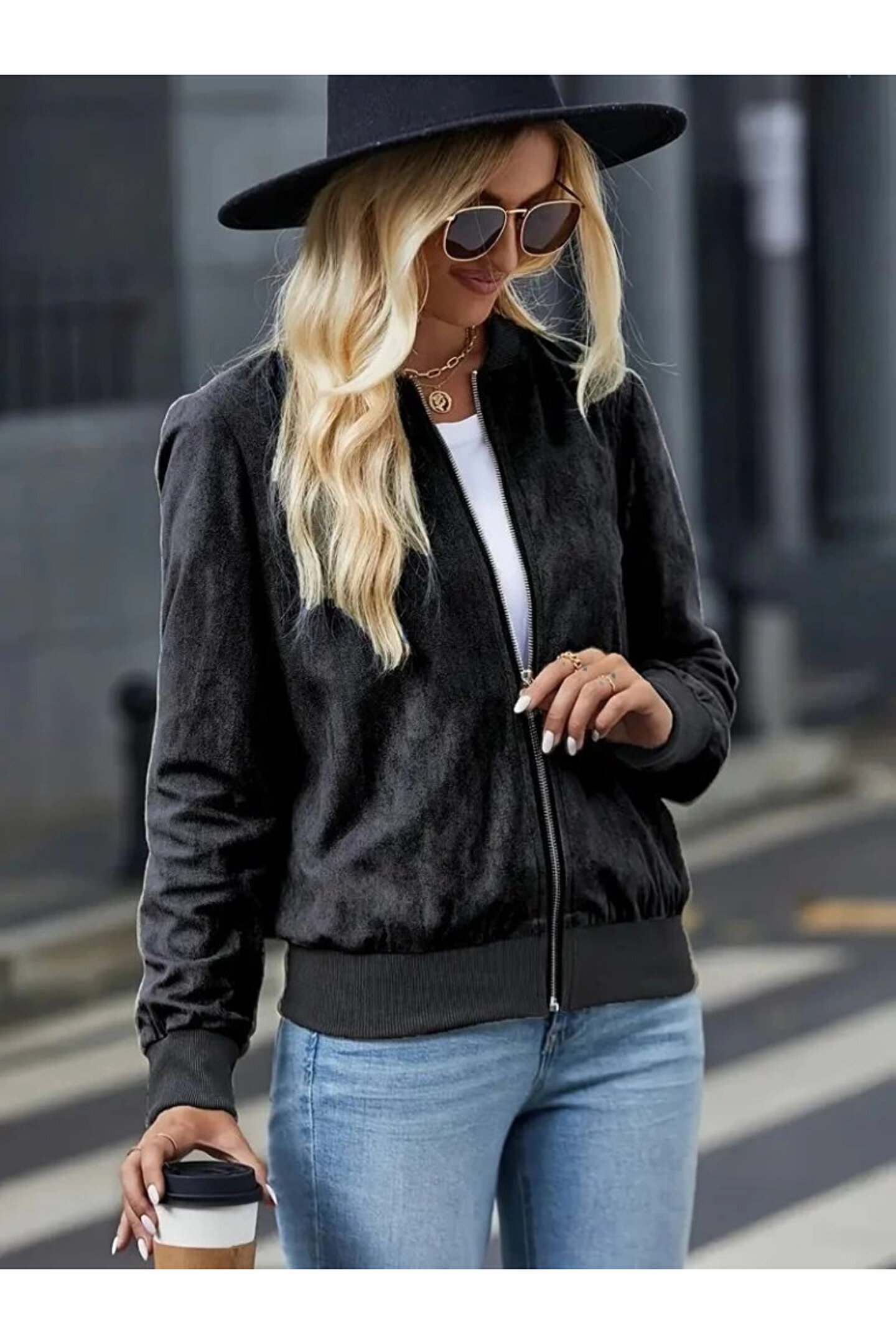 Kadın Uzun Kollu önden Fermuarlı Süet Ceket