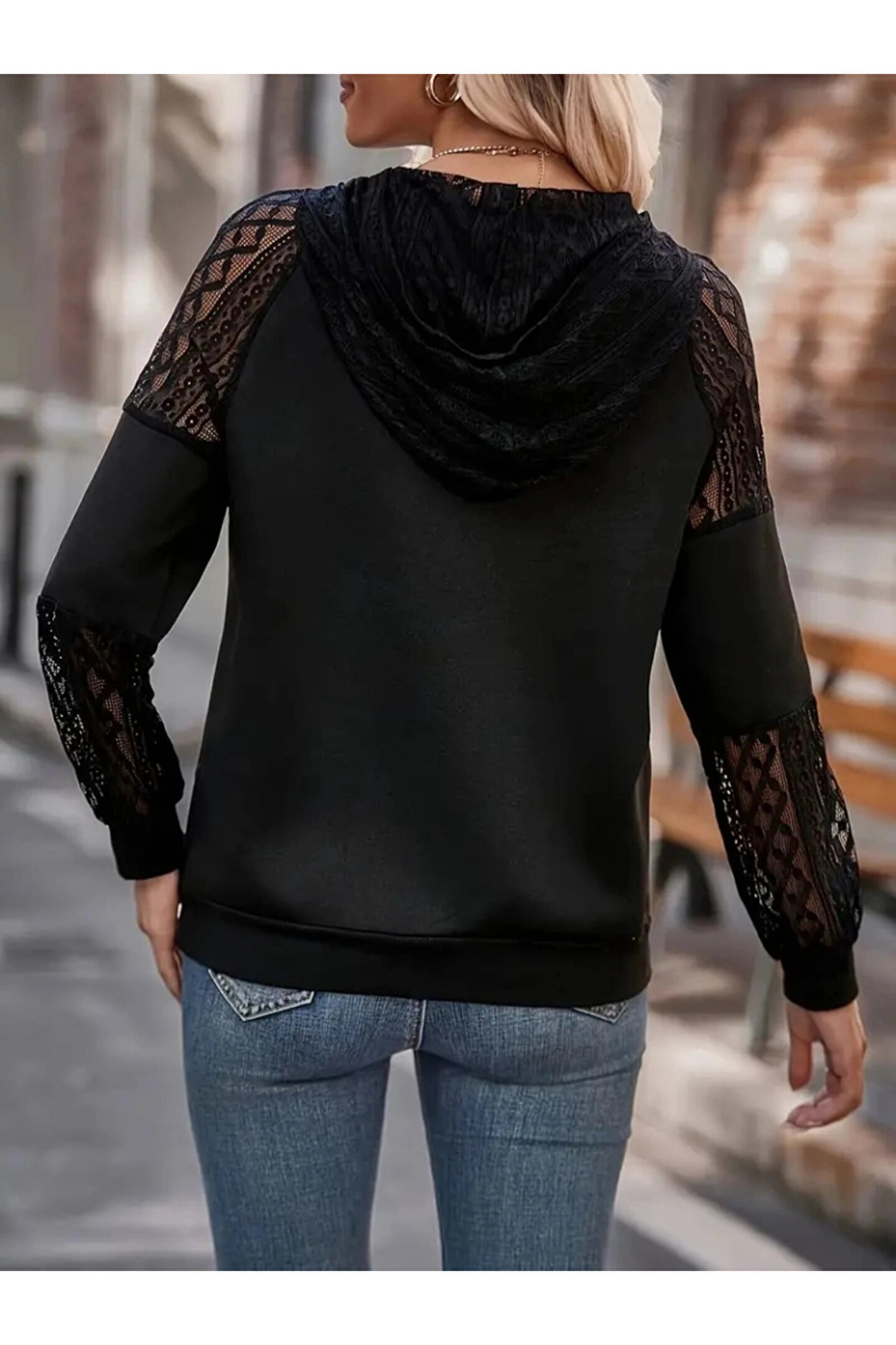 Kadın Uzun Kollu Dantelli Kapşonlu Viskon Iki Iplik Bluz