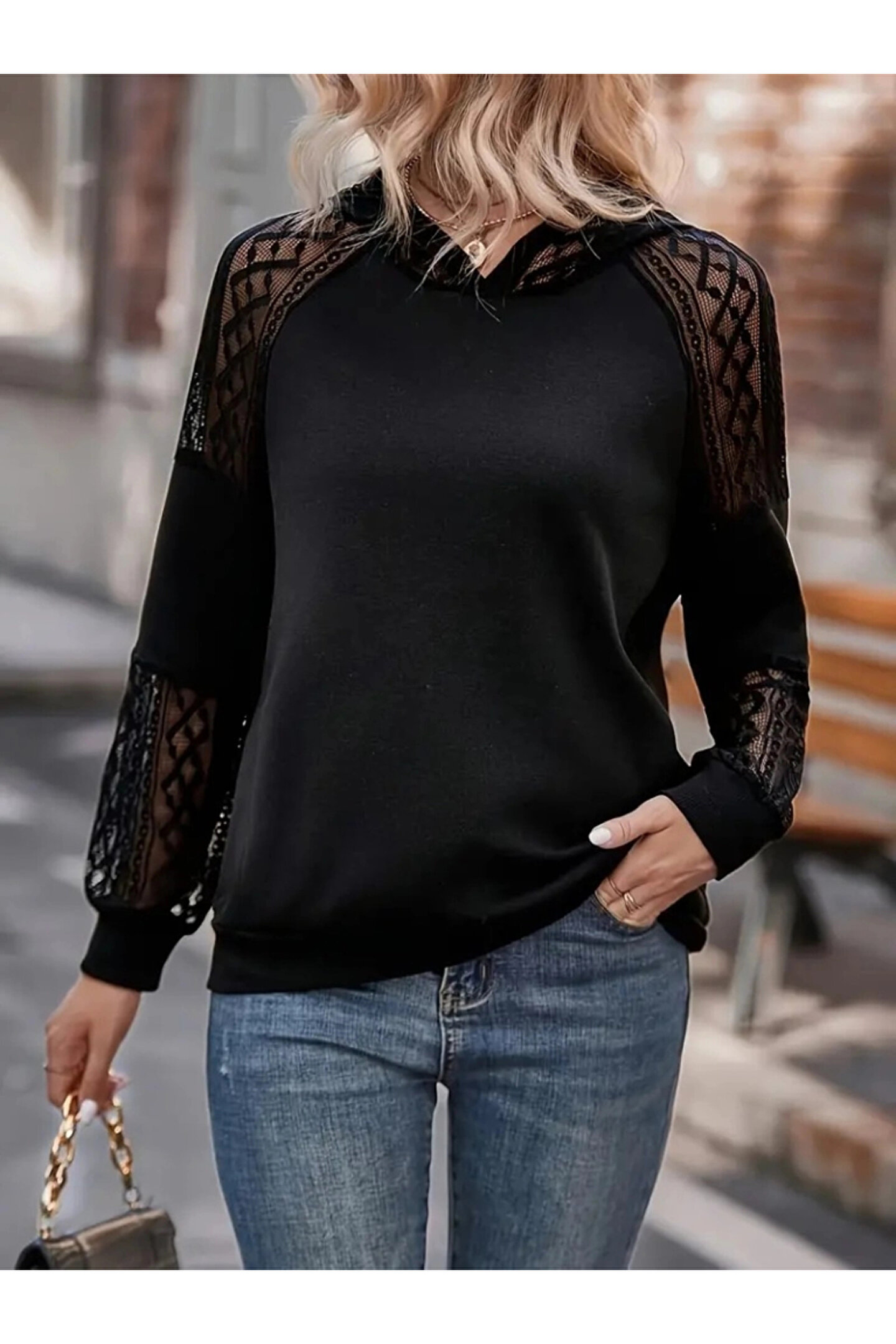 Kadın Uzun Kollu Dantelli Kapşonlu Viskon Iki Iplik Bluz