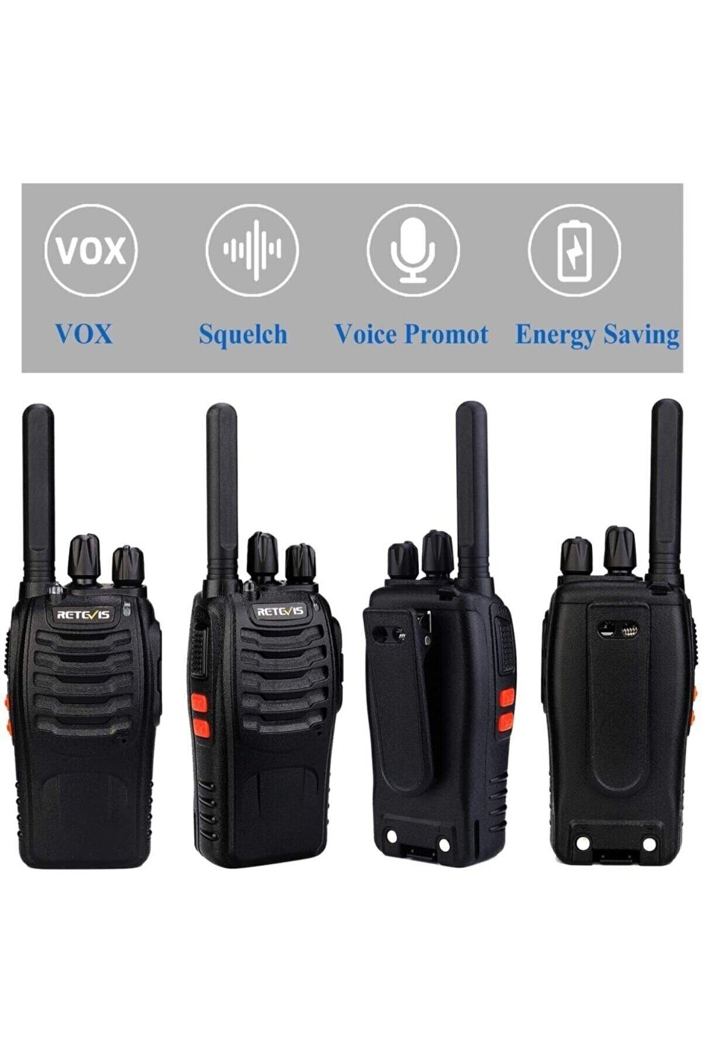 orijinal 16 kanal lisanssız pmr el telsizi.; Süper çekim gücüne sahip lisans ve kullanma belgesi gerektirmeyen telsiz.; Kulaklık hediyelidir.; Kullanılmamış sıfır ürün.; Profesyonel görünümü, hafif ve ergonomik yapısı ile retevis pmr lisanssız el telsizleri size partneriniz ve ekibiniz ile ücretsiz iletişim imkanı sunar.; Herhangi bir lisansa ve kullanım iznine tabi olmayan bu telsizler, fiyat performansı ile ön plana çıkmaktadır.; Tuşsuz, ekransız ve sağlam gövdesi ile haberleşme ihtiyaçlarınızı zor koşullarda yerine getirir.; Hediye olarak verdiğimiz kulaklık mikrofon seti ile telsizinizi elinize almadan da kullanabilirsiniz.; Bazı kullanım alanları : Profesyonel kullanım için, inşaat şantiyeleri, açık alanlar, oteller, moteller, kamp alanları, kampüsler, güvenlik firmaları, kreşler, cafeler, çay ocakları, marketler, mağazalar, restoranlar, otoparklar, siteler, hastaneler, organizasyon firmaları, büyük ve küçük ölçekli ofisler, tatil köyleri ve daha bir çok akla gelmeyen iş ve uygulamalarda kesintisiz iletişim için rahatlıkla kullanılabilir.; Ayrıca balıkçılar, valeler, avcılar, bisikletçiler, motosikletçiler, karavancılar, kampçılar, dağcılar, sporcular, ve yolculukta birbirini takip eden araçlar rahatlıkla ve kolaylıkla kullanabilir.; Teknik özellikler : diğer pmr 446 lisanssız diğer marka ve model telsizlerle görüşme yapabilme imkanı Hafif ve ergonomik tasarım (171gr.; ) 16 ayrı pmr frekansı 39 tpl ve 83 dpl kodları 16 kanal Pc ile programlanabilir Li-Ion batarya (1500 mah) 500 mili watt rf çıkış gücü 500 mw ses çıkış gücü Arazi şartlarına göre açık alanda 5 - 15 km ye kadar görüşme imkanı Kutu içeriği : 4 adet retevis pmr el telsizi 4 adet li-Ion 1500 mah batarya 4 adet kazançlı anten 4 adet masaüstü tekli şarj cihazı 4 adet bel klipsi 4 adet ingilizce kullanım kılavuzu 4 adet ptt tuşlu bas konuş kulaklık 4 adet taşıma ipi * but telsiz lisans gerektirmeyen, herkesin alıp kullanabileceği bir üründür.
