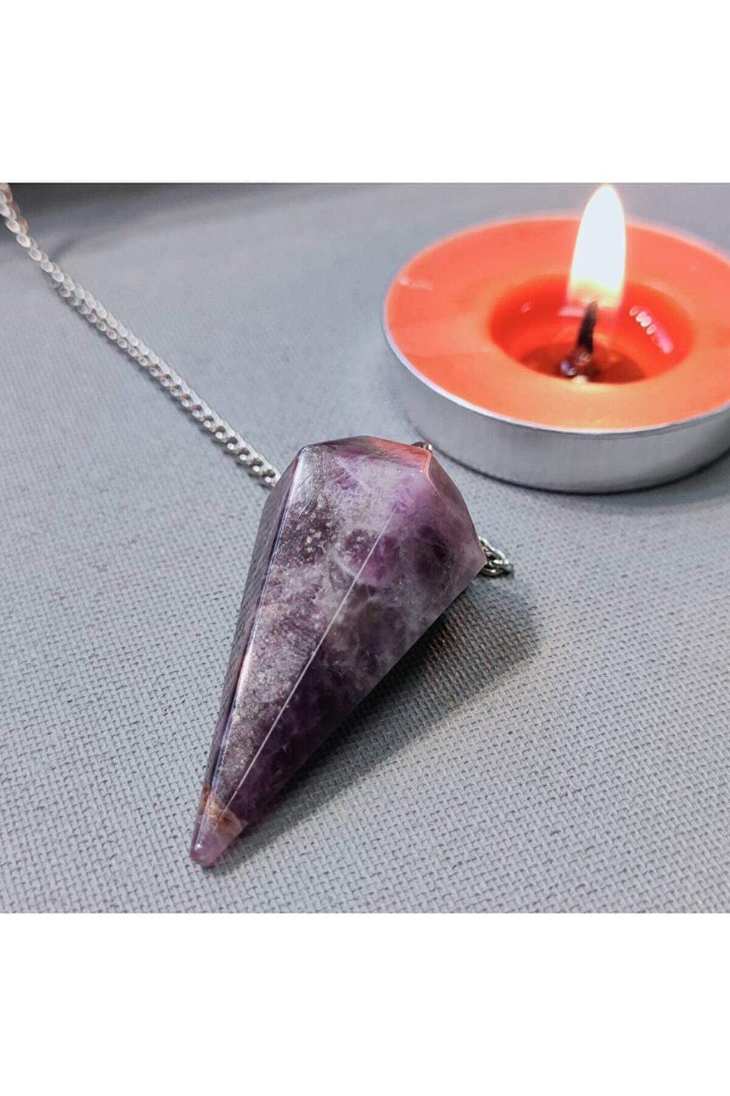 - Doğal Ametist taşı kullanılarak üretilmiş, zarif ve şık bir aksesuar; - Ametist taşı, sarkaç formunda tasarlanmış olup, her hareketinizde parıldayan bir ışıltı sunar; - Doğal taş materyali ile hem dayanıklılık hem de estetik bir görünüm sağlar; - Kolye, günlük kullanım için idealdir ve her türlü kıyafetle uyum sağlayacak şekilde tasarlanmıştır;
