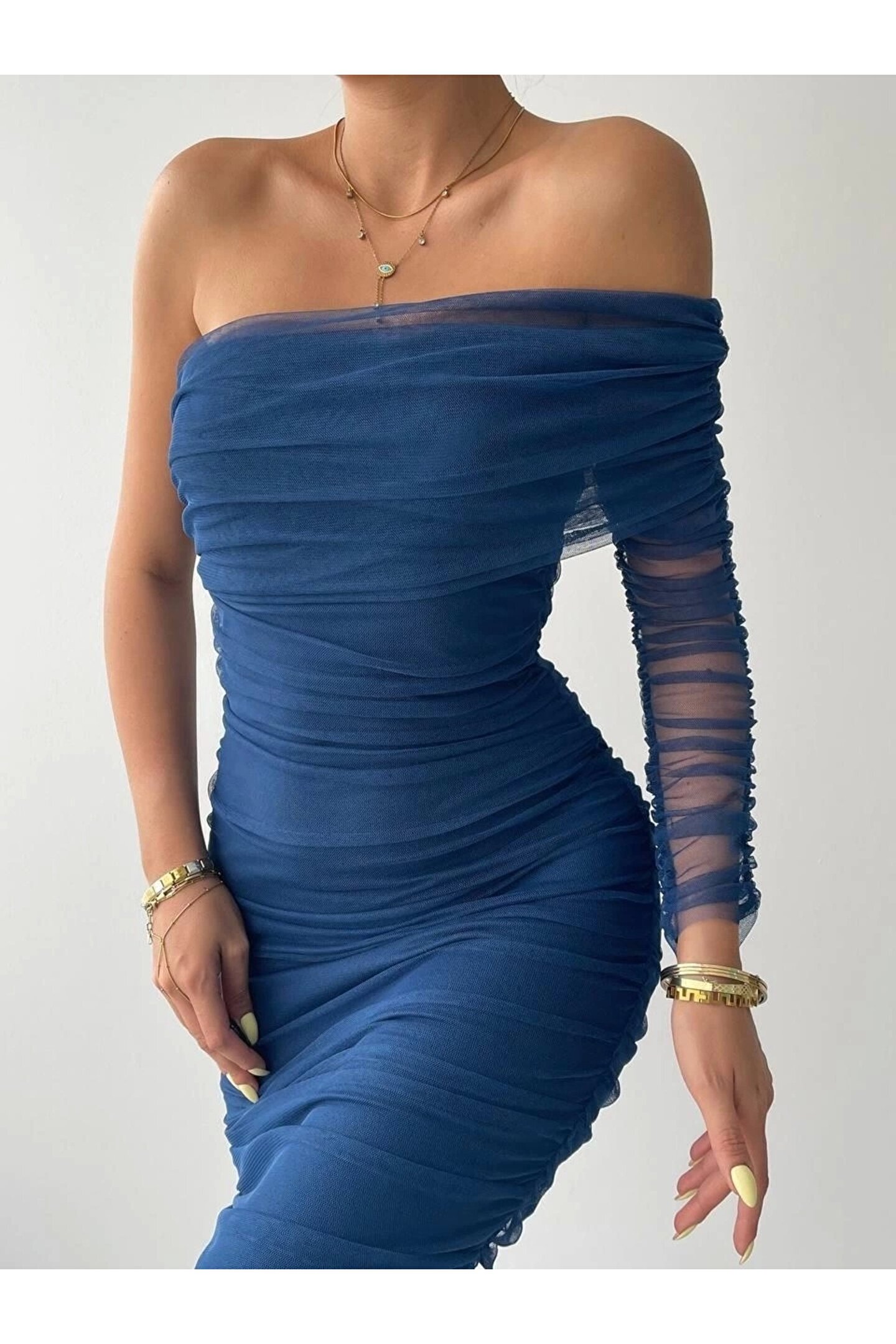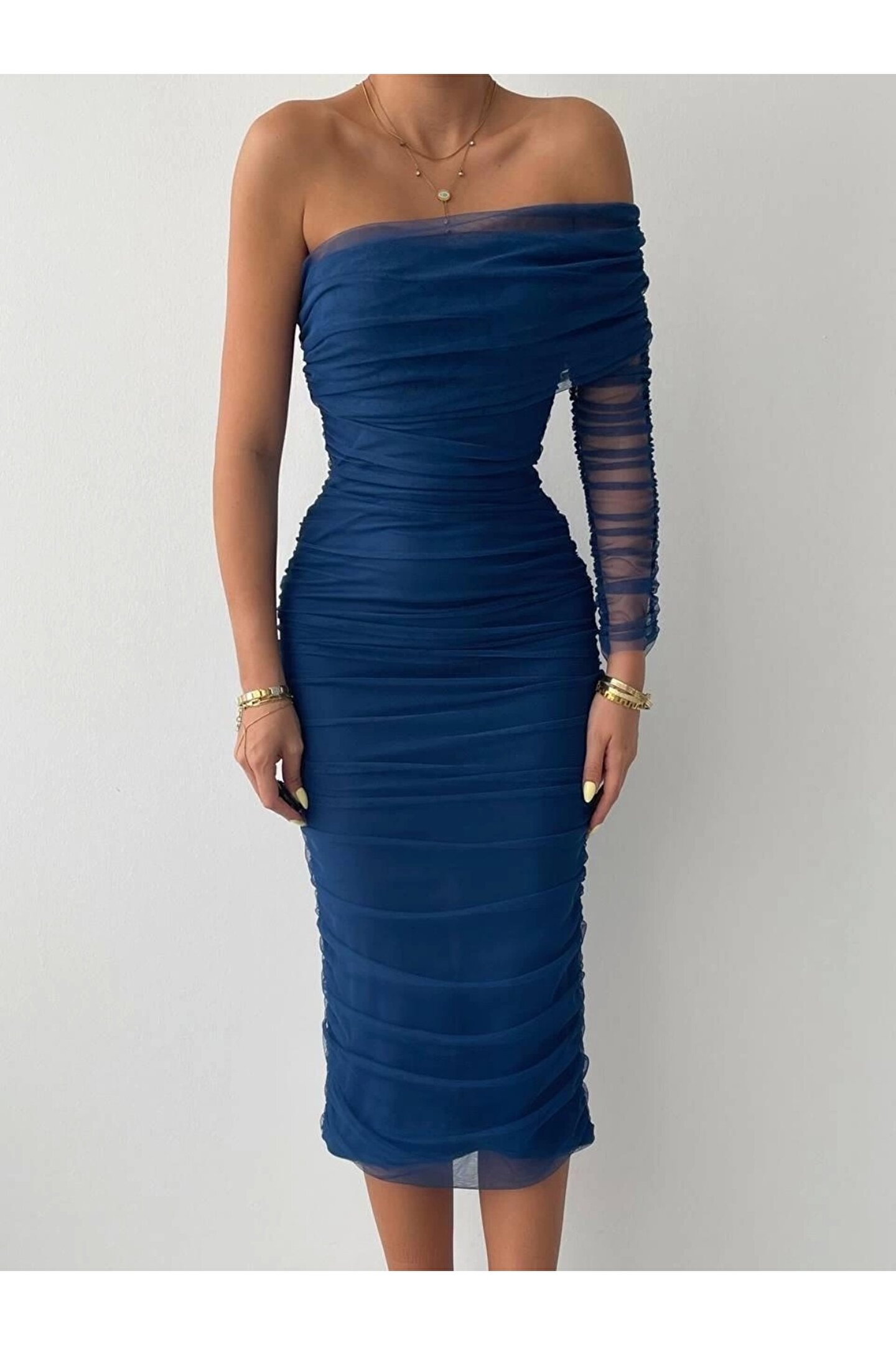 BY ELİZE Polack Tek Omuz Tül Elbise