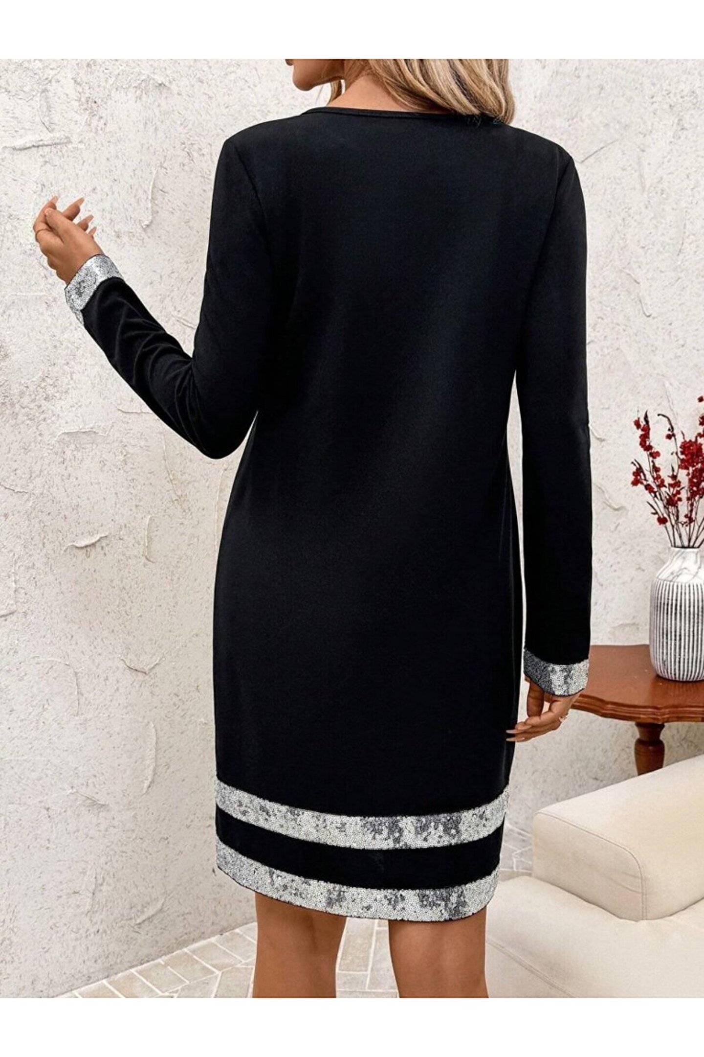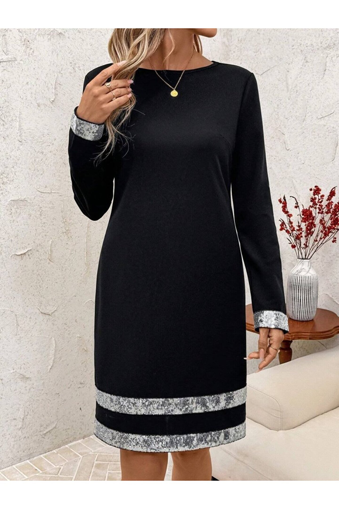 Kadın Uzun Kollu Bisiklet Yaka Mini Ithal Krep Elbise.; Ürün detayları ve kullanım hissi kişisel tercihlere göre değişiklik gösterebilir.
