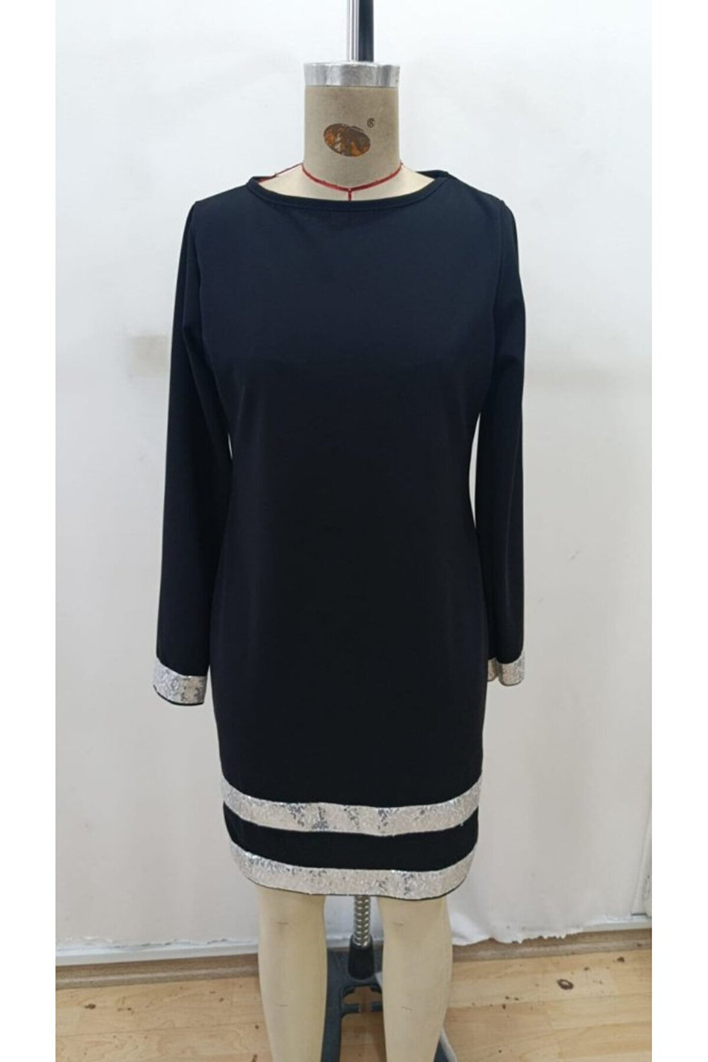 By Sevilen Collection Kadın Uzun Kollu Bisiklet Yaka Mini Ithal Krep Elbise