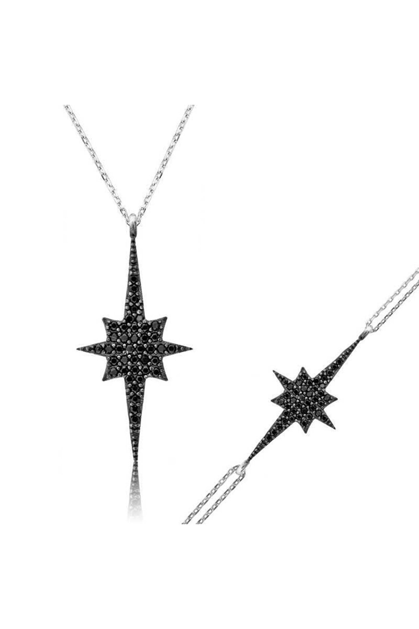 Himarry 925 Ayar Gümüş Siyah Kutup Yıldızı Set