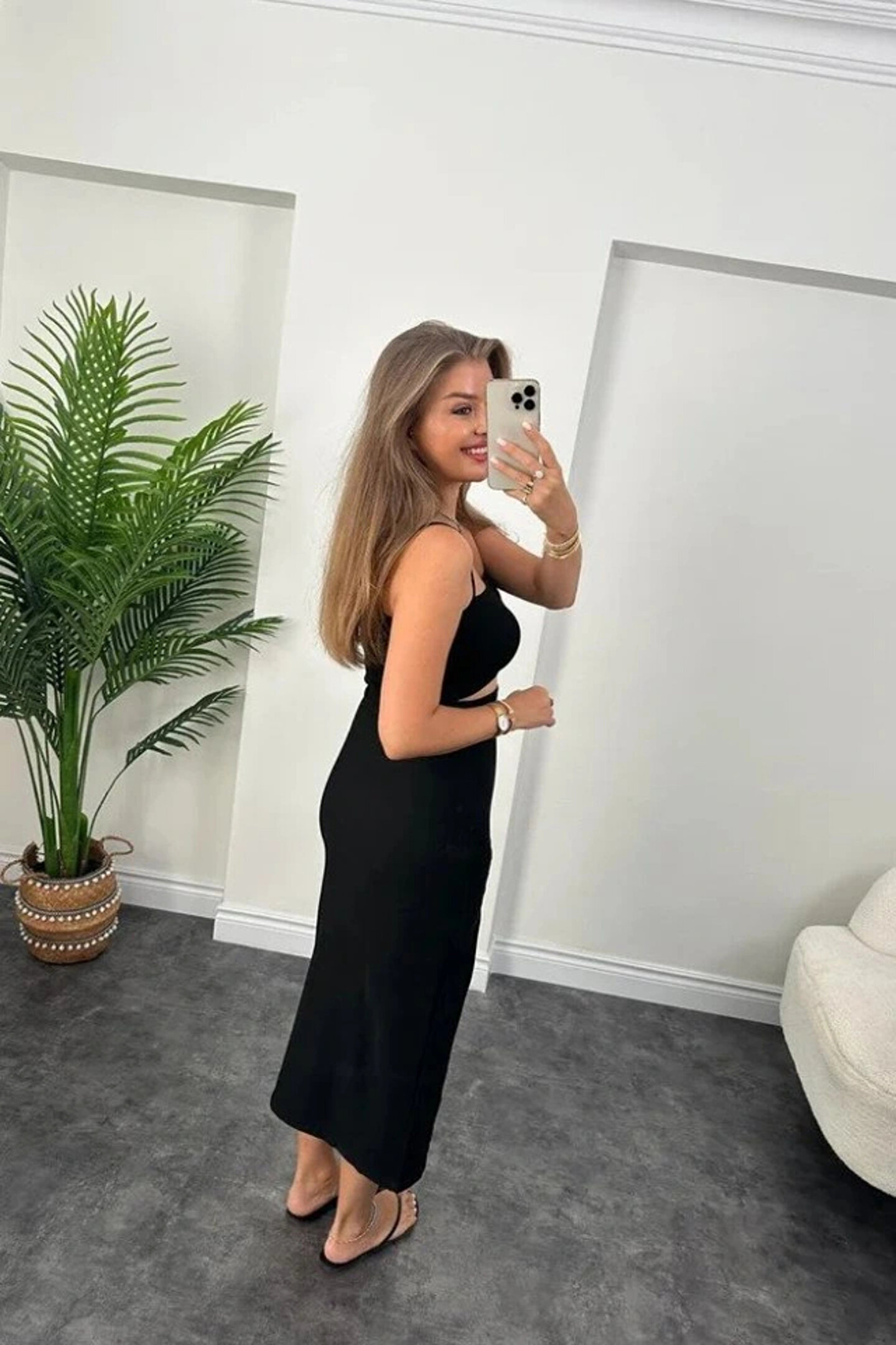 CappBox Kadın Ottoman Kumaş Likralı Midi Boy Kalem Etek Siyah