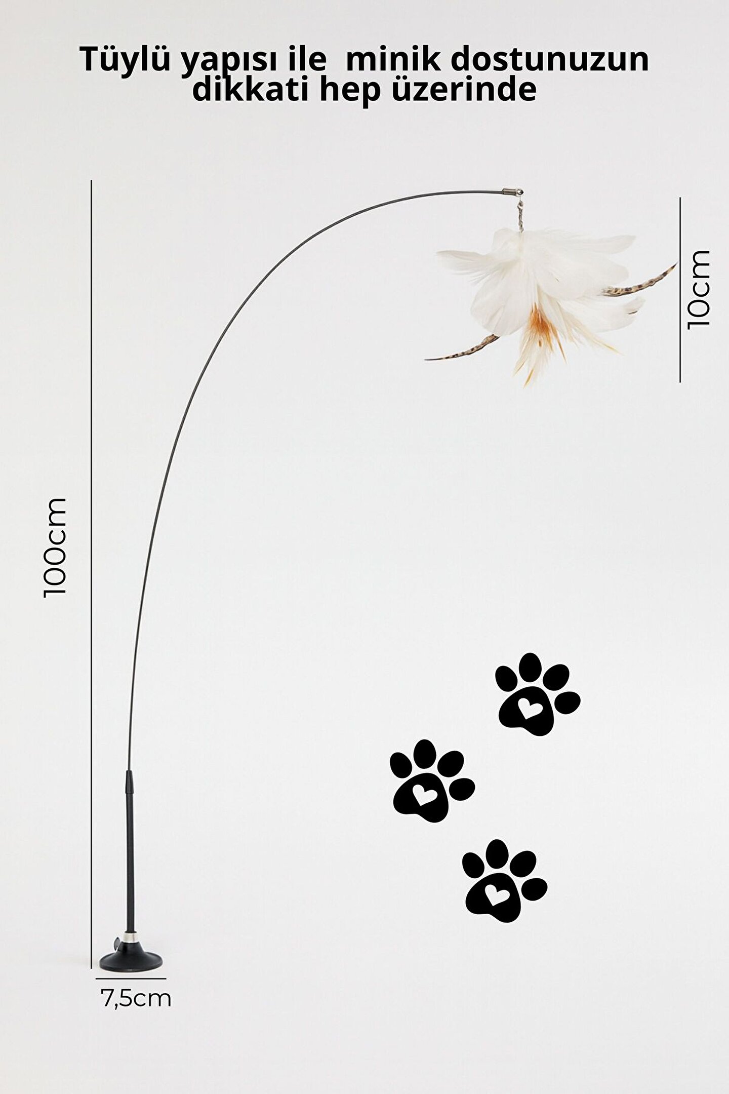 Evcil hayvanlarınızın enerjisini atabileceği, eğlenebileceği ve sağlıklı bir şekilde oyun oynayabileceği mükemmel bir ürünle tanışın! Bu zıplayan tüy oyuncaklı kedi oyuncağı, özellikle hareketli ve oyuncu kediler için tasarlanmıştır.; Esnek ve sağlam yapısı sayesinde kedinizin dikkatini çeker, reflekslerini geliştirir ve günlük hareket ihtiyacını eğlenceli bir şekilde karşılamasını sağlar.; Vakumlu taban tasarımı sayesinde oyuncağı düz zeminlere kolayca sabitleyebilir, böylece devrilme veya kayma gibi sorunlarla karşılaşmazsınız.; Tüy kısmı doğal avcılık içgüdüsünü harekete geçirerek kedinizin ilgisini sürekli canlı tutar.; Aynı zamanda bu oyuncak, evde yalnız kalan kediler için harika bir arkadaş niteliğindedir.; Dayanıklı malzemelerden üretilmiş olup uzun ömürlü kullanım sağlar.; Hem yavru hem de yetişkin kediler için uygundur.; Ürün Özellikleri Tüy detaylı esnek kedi oyuncağı Vakumlu taban ile kolay sabitleme Dayanıklı ve kaliteli malzeme Refleks gelişimi ve egzersiz desteği Hem yavru hem yetişkin kedilere uygun Kedinizin fiziksel ve zihinsel gelişimini destekleyen bu interaktif oyuncak ile hem evcil dostunuz mutlu olacak hem de siz huzurlu hissedeceksiniz.; Günlük kullanım için idealdir ve mobilyalara zarar vermeden enerjisini atmasına olanak sağlar.; Kargo Bilgisi Siparişleriniz özenle paketlenip, güvencesi ile hızlı bir şekilde adresinize teslim edilmektedir.; Evcil dostunuza küçük bir mutluluk hediye etmek isterseniz, bu kedi oyuncağı tam size göre!