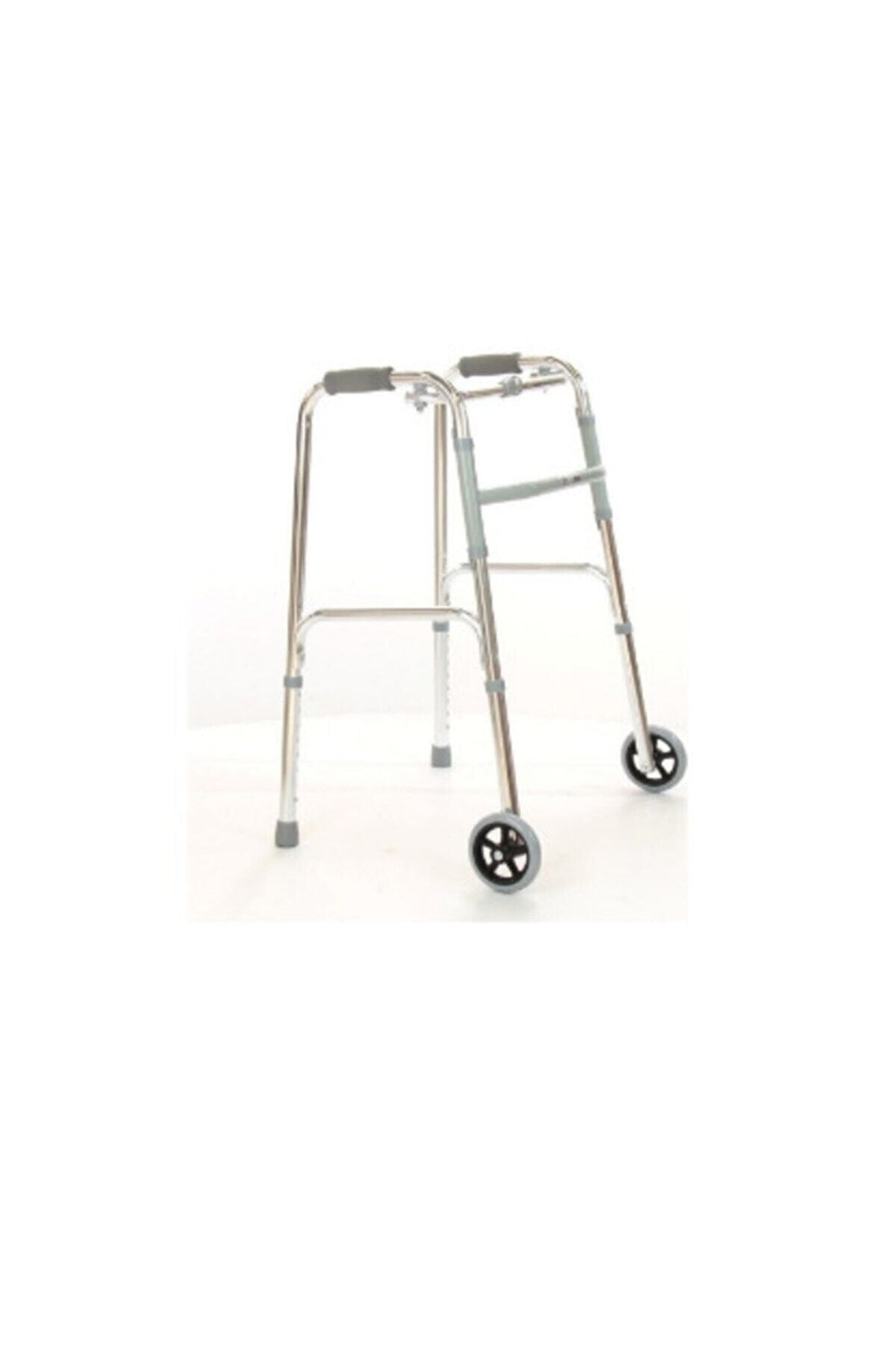Tekerlekli Yürüteç ( Walker ) Beden:Yetişkin Beden Ürün Açıklaması ve Kullanım Alanı: Alüminyum alaşımlı, katlanabilir ve yüksekliği ayarlanabilir 2 tekerlekli yetişkin yürüteçi.Ürün yetişkinler için tasarlanmış ve üretilmiştir. ; Güçlü ve dayanıklıdır. ; Farklı boy yükseklik gereksinimleri karşılamak için 8 kademe ayarlanabilir. ; Ameliyat sonrası rehabilitasyon egzersizlerinde ve yürüme zorluğu çeken hastaların yürümeye başlamasına yardımcı olur. ; Gövde Yapısı:Alüminyum gövde. ; Gövde Rengi: Gövde gümüş - gri, el tutamaçları gri, tekerlekler ve papuçları gri renk. ; Demonte Özelliği: Kolaylıkla katlanabilir. ; Kolçak: Sürüş tutma kolları ergonomik yumuşak süngerden imal edilmiş, 8 kademe yükseklik ayarlı, 79 cm ile 97,5 cm arası istediginiz ölçüde ayarlabilir. ; Ön Teker: 5 inç ( 13 cm) gri renkli yerde iz yapmayan dolgu ön teker, Arka Teker / Papuç : Gri renkli yerde iz yapmayan kavucuk papuç . ; Belgelendirme: CE, TSE Garanti: 2 yıl ürün garantisi, 10 yıl yedek parça bulundurma garantisi var. ; El Tutamak Yeri Yüksekliği: 79-97,5 cm Genişlik: 67,5 cm Uzunluk: 52,5 cm Yükseklik: 79-97,5 cm Katlanmış Ölçüleri: 67*11,5*82,5 cm Taşıma Kapasitesi (Max.): 120 Kg Net Ağırlık: 2,60 Kg Aksesuarlı Ağırlık: 2,60 Kg Koli Adeti: 2 adet Koli Ağırlığı: 6,9 kg Koli Ölçüsü: 63*19*85 Koli Desisi: 33,92 Desi;