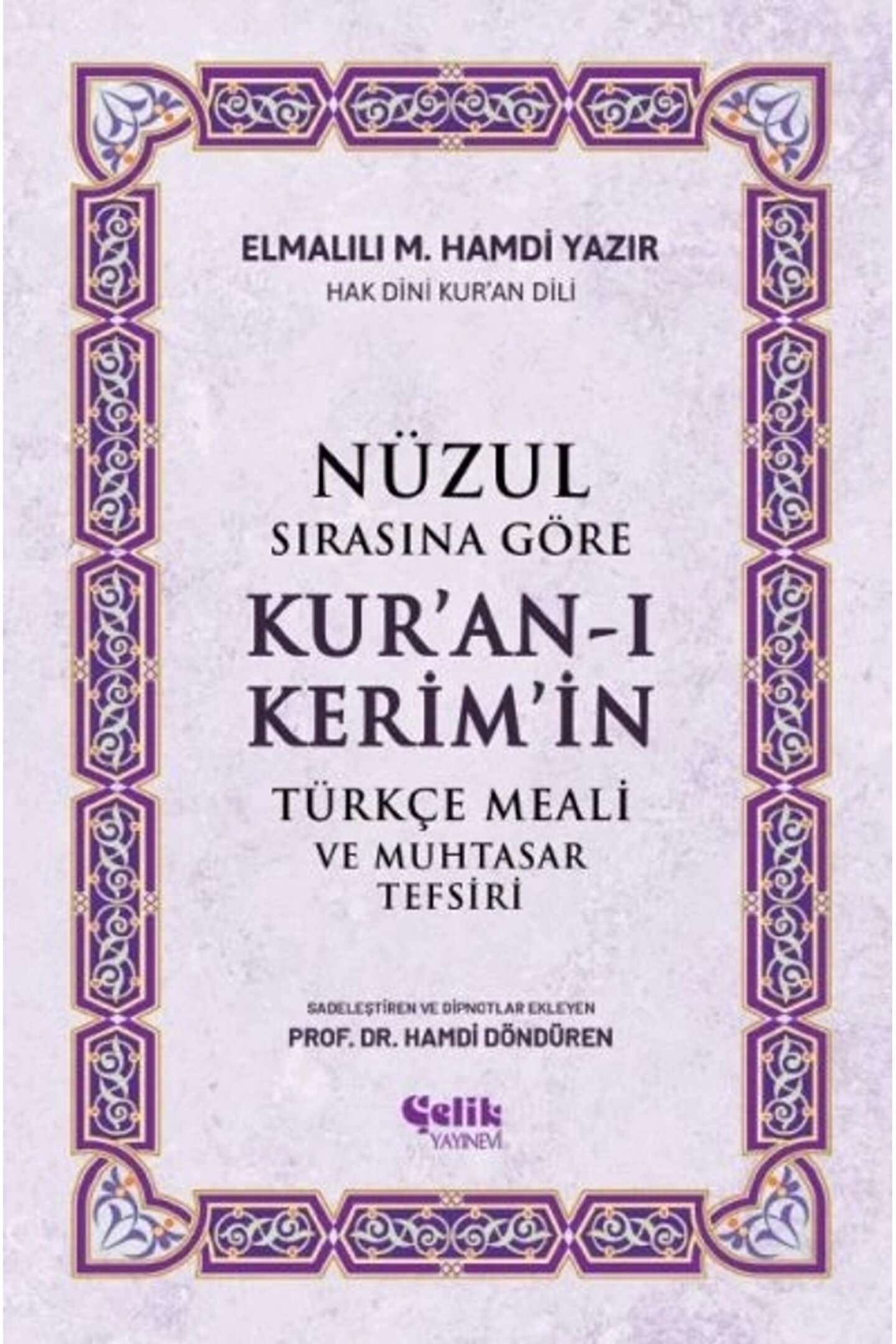 Elmalılı M.; Hamdi Yazır’ın Hak Dini Kur’an Dili adlı eseri, Prof.; Dr.; Hamdi Döndüren’in titiz çalışmalarıyla sadeleştirilmiş ve çoğu Elmalılı tefsirinden, başka tefsir ve hadis kaynaklarından özlü dipnotlar ilave edilerek düzenlenmiştir.; Özellikle hüküm ayetlerinde ve gerekli görülen bazı yerlerde bir sayfayı bulan açıklamalar eklenmiştir.; Nüzul Sırasına Göre Kur’an-ı Kerim’in Türkçe Meali ve Muhtasar Tefsiri başlığıyla neşredilen bu eser de aynı eserin nüzul sırasına göre tertip edilip düzenlenerek okuyanların istifadesine sunulmuş halidir.; Bu tertipteki gayemiz ise, Kur’an’ın nazil olmaya başladığı zamandan, son ayetlerin inip vahyin tamamlanıncaya kadarki süreci adım adım takip etmek, bir nebze de olsa o iklime girmeye çalışmaktır.; Ürün Adı: Nüzul Sırasına Göre Kur'an-ı Keri·m'i·n Türkçe Meali· Ve Muhtasar Tefsiri Ürün Kodu: 9786057092366 Yazar: Elmalılı M.; Hamdi Yazır Basım Yılı: 2022 Kapak Türü: Karton Kapak Sayfa Sayısı: 592 Kağıt Cinsi: 2. Hamur Çevirmen: