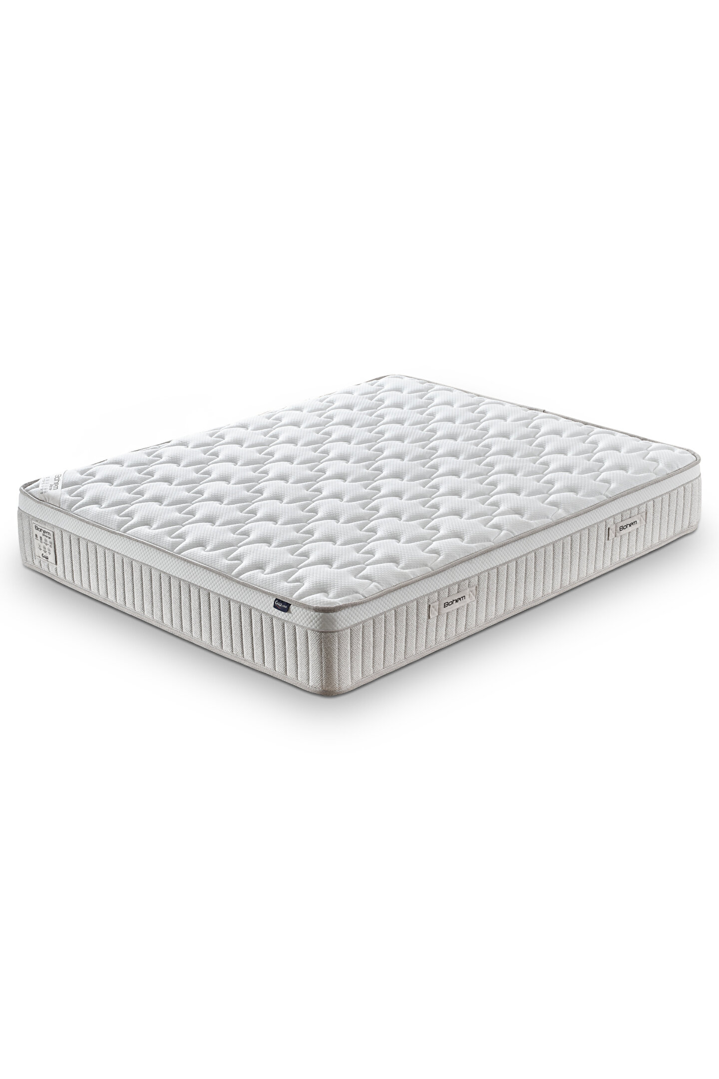Bohem Pocket Yaylı Yatak, özel ısı dengeleyici elyaf yapısı ve konfor süngeri katmanıyla gece boyunca vücut sıcaklığınızı dengede tutar. Çevre destek süngerleriyle yatak formunu korur, pocket yay sistemiyle hareket izolasyonu sağlar.