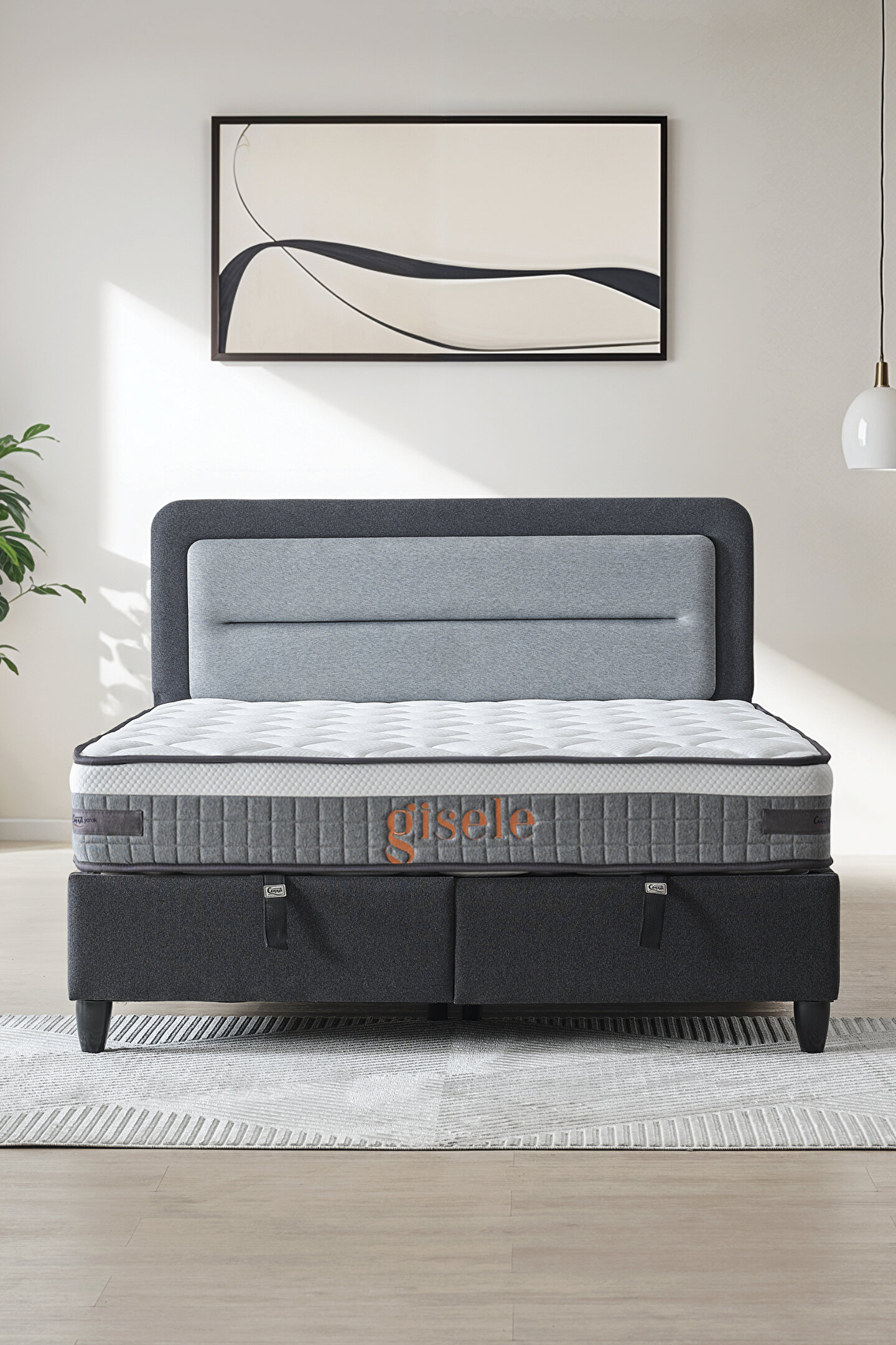CENNET YATAK Gisele Modeli Full Ortopedik Çift Kişilik Pedli Yataklı Baza ve Başlık Takımı 3 lü Set