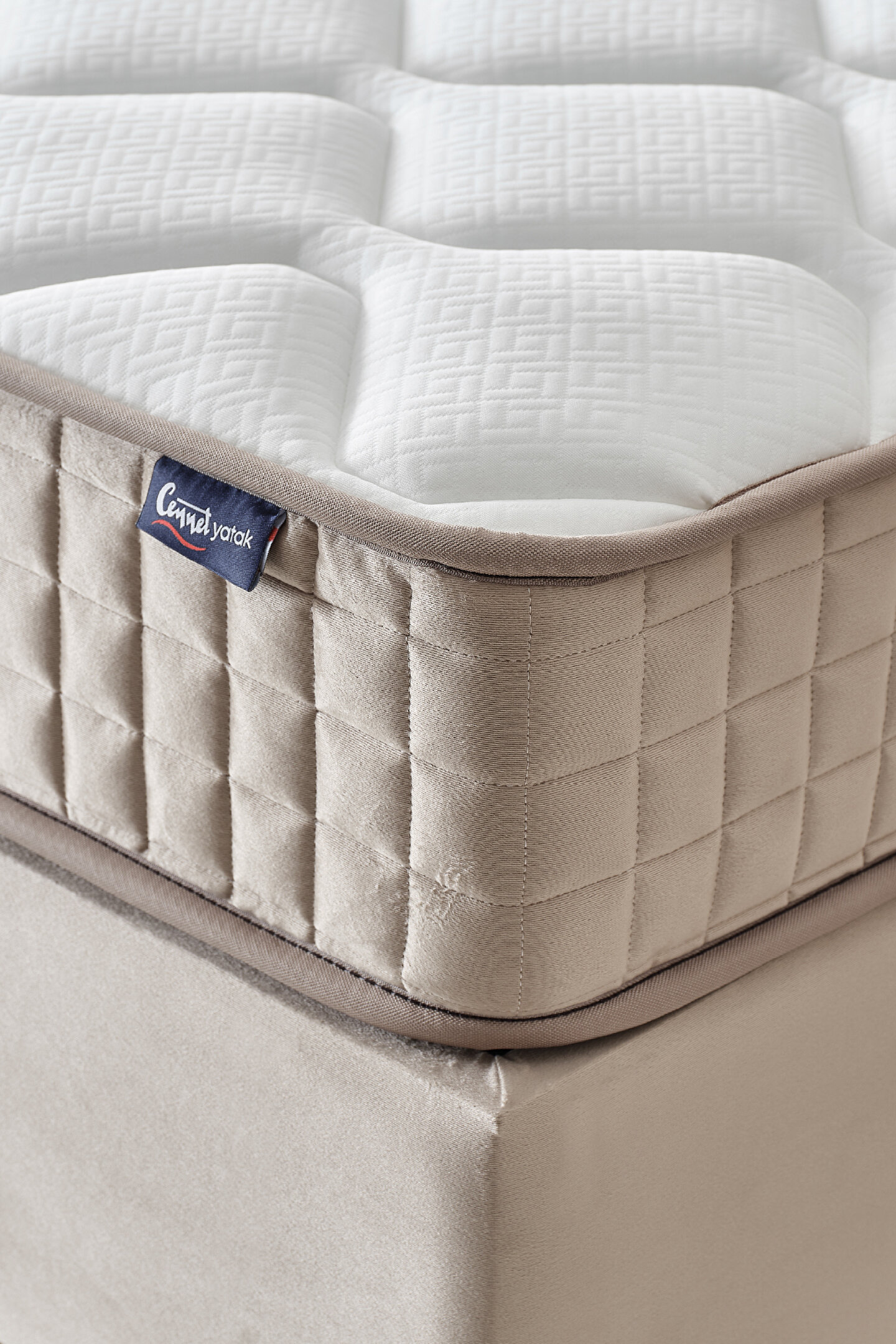 Tek Kişilik Manolya Başlık & Baza Takımı & Yatak 3 lü Set Manolya Başlık Özellikleri Kumaş ve Konfor Kumaş Türü: Dokuma kumaş Özellik: Sünger dolgulu ve kolay silinebilir yapı Ölçüler Yükseklik (Boy): 101 cm Derinlik: 7 cm Manolya Baza Özellikleri Kumaş ve Malzeme Kumaş Türü: Dokuma kumaş Çevresi: Sünger dolgulu, kolay silinebilir yüzey Kapak Kalınlığı: 20x40 mm (TR standartlarında en kalın ölçü) Kapak Üstü : Kaydırmaz Tela Kullanılmıştır Et Kalınlığı: 1 mm Gövde Ölçüsü: 20x30x0.80 mm İskelet: Statik fırınlı boya, çizilmeye karşı ekstra dayanıklı ve markaya özel renkte Teknik Detaylar Baza Tipi: Sandıklı baza Depolama Alanı: 23 cm iç yükseklik Kulp Tipi: Kemer model kumaş kulp Ayak Yüksekliği: 12 cm (robot süpürge uyumlu) Gövde Mekanizması: Metal iskelet + yonga levha Güvenlik ve Dayanıklılık Emniyet: Yüksek güvenlikli emniyet kilidi Kapakta: Anti-Sleep özellikli özel tela Garanti: 2 yıl Manolya Yatak Özellikleri Yay Sistemi – Sessiz Paket Yay Yay: Sessiz paket yay (torba yay) sistemi, konforlu bir uyku deneyimi sunar.; Uyum: Vücut hatlarını takip eden yapı, gece boyunca doğal duruşu destekler.; Destek Katmanları Sünger: 24 DNS destek süngeri, ideal sertlik ve konfor dengesini sağlar.; Sertlik Derecesi : Orta sert Konfor : Full-ortopediktir bu sayede bel ağrılarını minumuma indirir.; Omurga sağlığını destekler Kaplama ve Kumaş Kumaş: Ferahlatıcı etkili, terlemeyi önleyici doğal örme kumaş Yatak Yüksekliği Yükseklik: 22 cm standart ölçü Ekstra Özellikler Kullanım: Çift yönlü destek katmanı, özel hava kanalları sayesinde serin uyku deneyimi Hijyen: kolay temizlenebilir Bilgilendirme : Doktorların tavsiye ettiği yatak modeli Paketleme : Roll Pack şeklinde gönderilmektedir.; Yatağın tam formuna gelmesi 48 - 72 saat arasındadır Nakliye bina önü değil, kapı teslimidir.